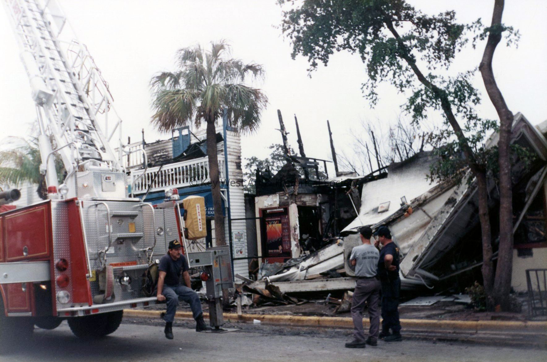Color photograph of the damage sustained during a large fire at The Copa on the 600 block of Duval Street.