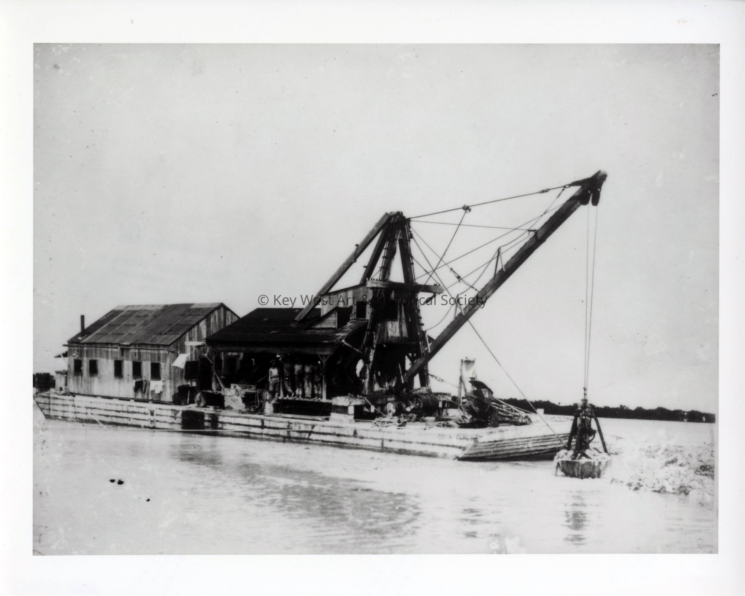 Black and white photograph of Florida East Coast Railway dredge.