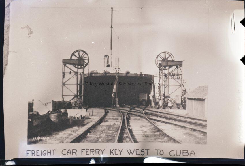 Photographic negative depicting a Florida East Coast Railway's Freight Car Ferry which sailed from Key West to Cuba. Notations indicate that this image was copied from Nola Smileys.
