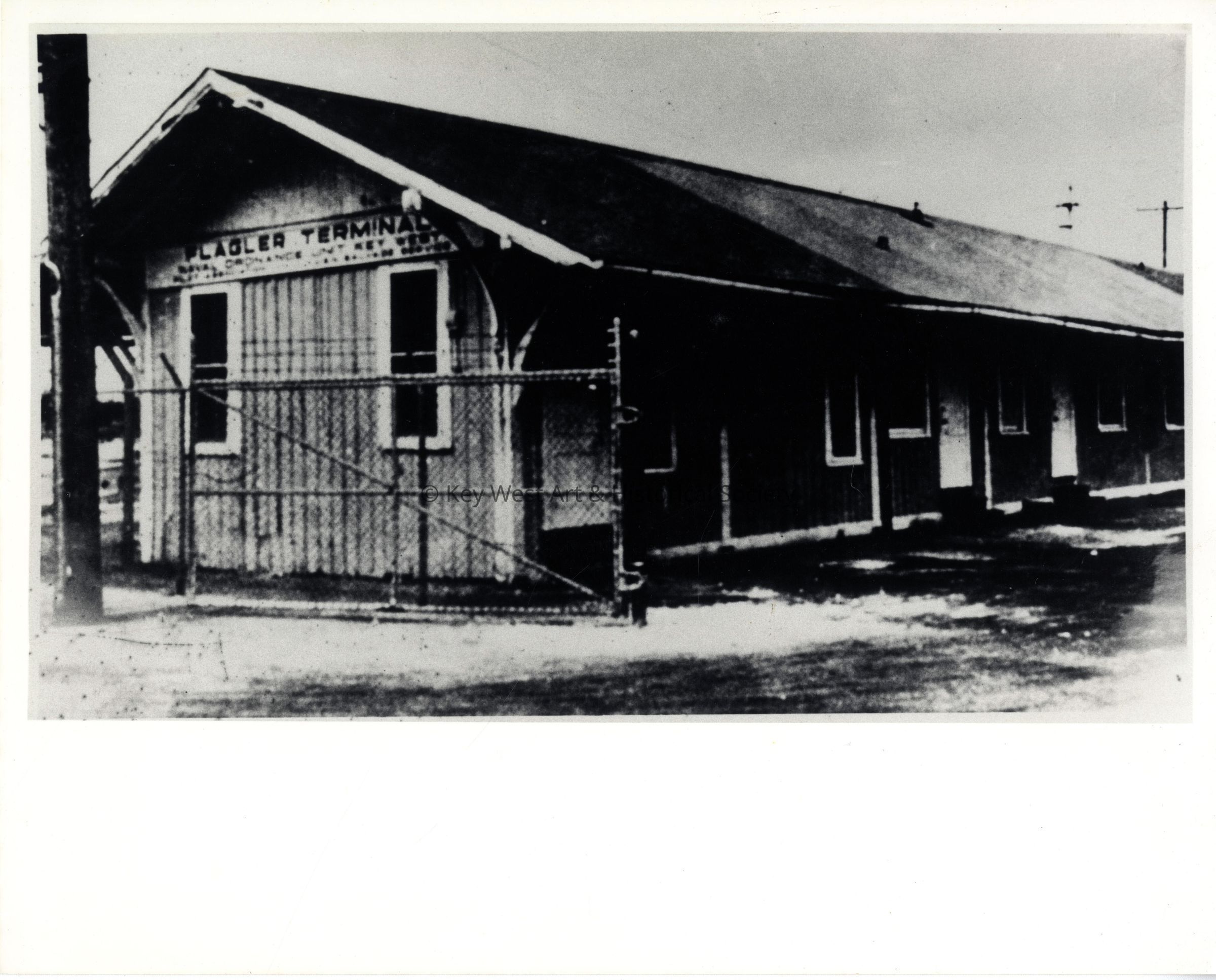 Black and white photograph of the Florida East Coast Railway Key West train depot building.