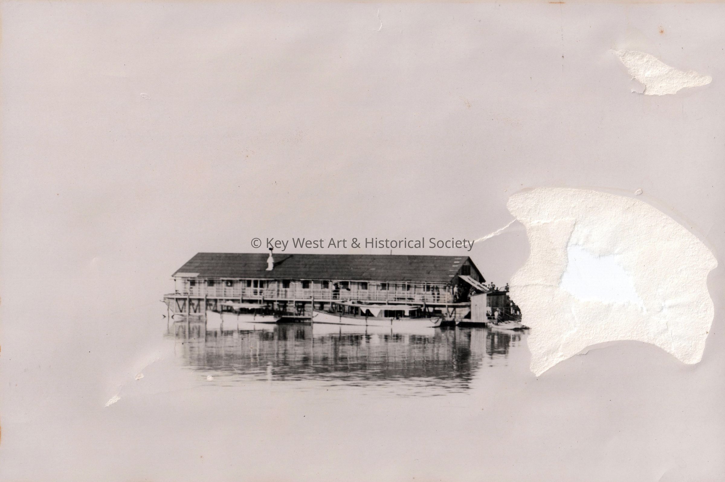 Quarter boat #3, at Long Key Viaduct, in July of 1906. Workmen were quartered on these boats during the construction of the Florida East Coast Railway's Overseas Extension to Key West. During the storm of 1909 one of these boats was blown out to sea with considerable loss of life.Collection