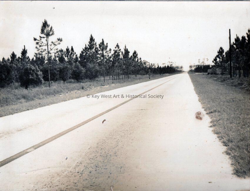 Typical concrete road thru pines in the Florida Keys, in 1933.Collection