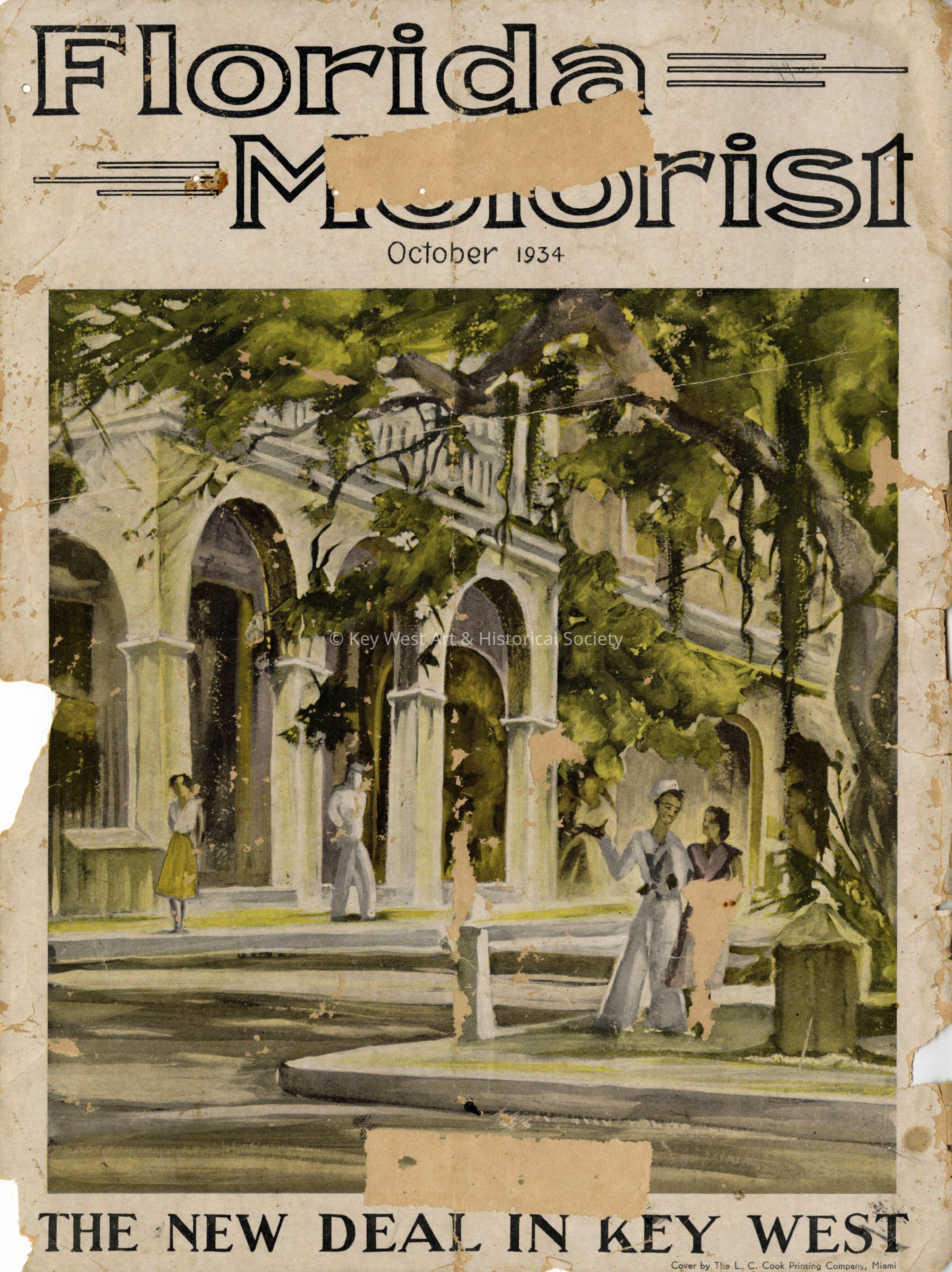 Front cover and one page of the Florida Motorist magazine that highlights the New Deal in Key West.