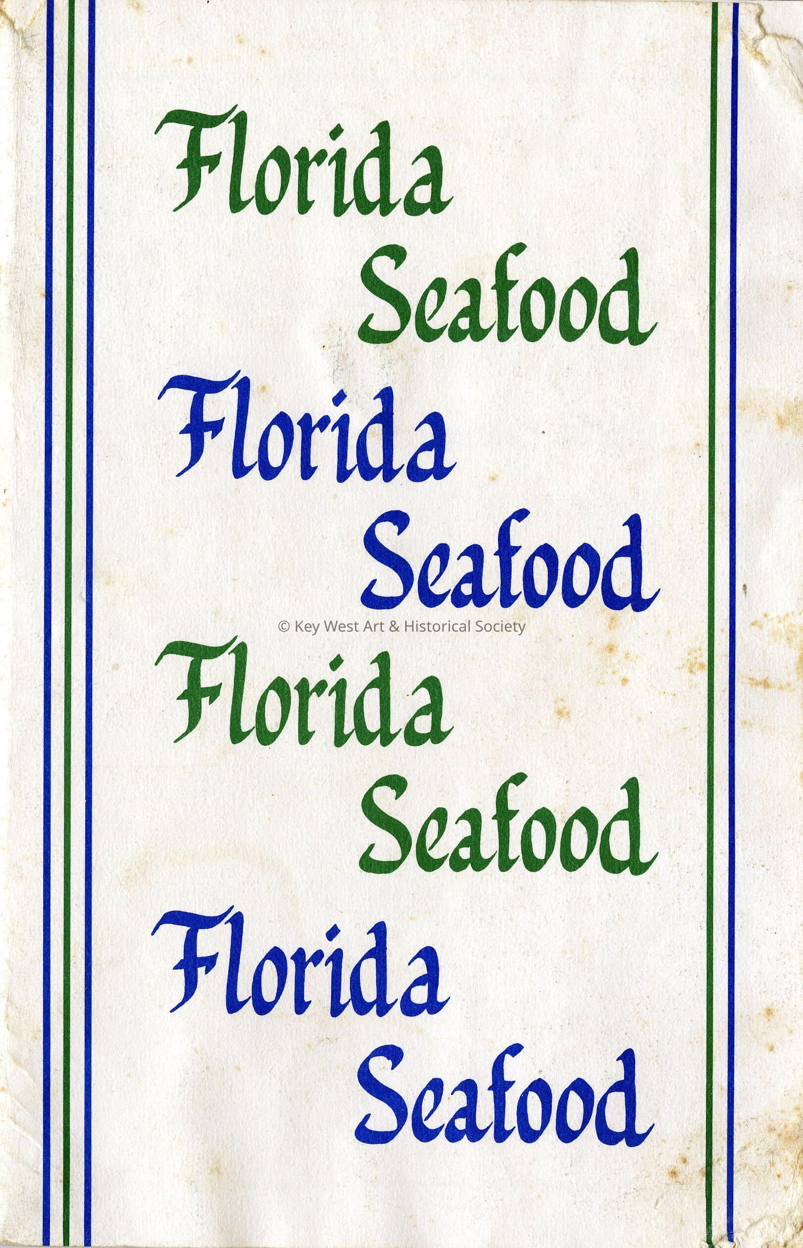 A 36-page paperback cookbook entitled, 'Florida Seafood'.