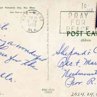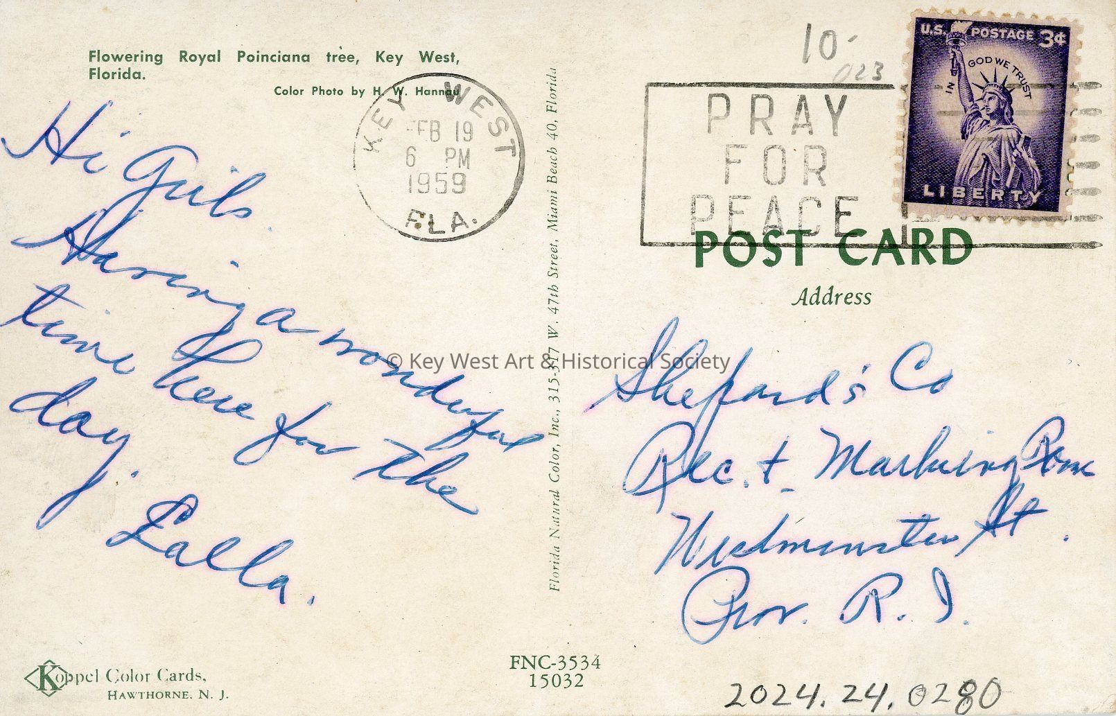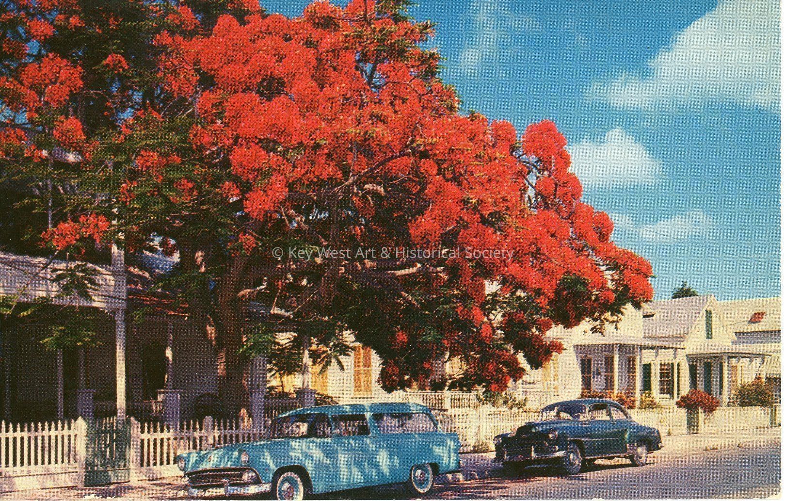 Postcard depicting a flowering Royal Poinciana tree in Key West, Florida.Collection