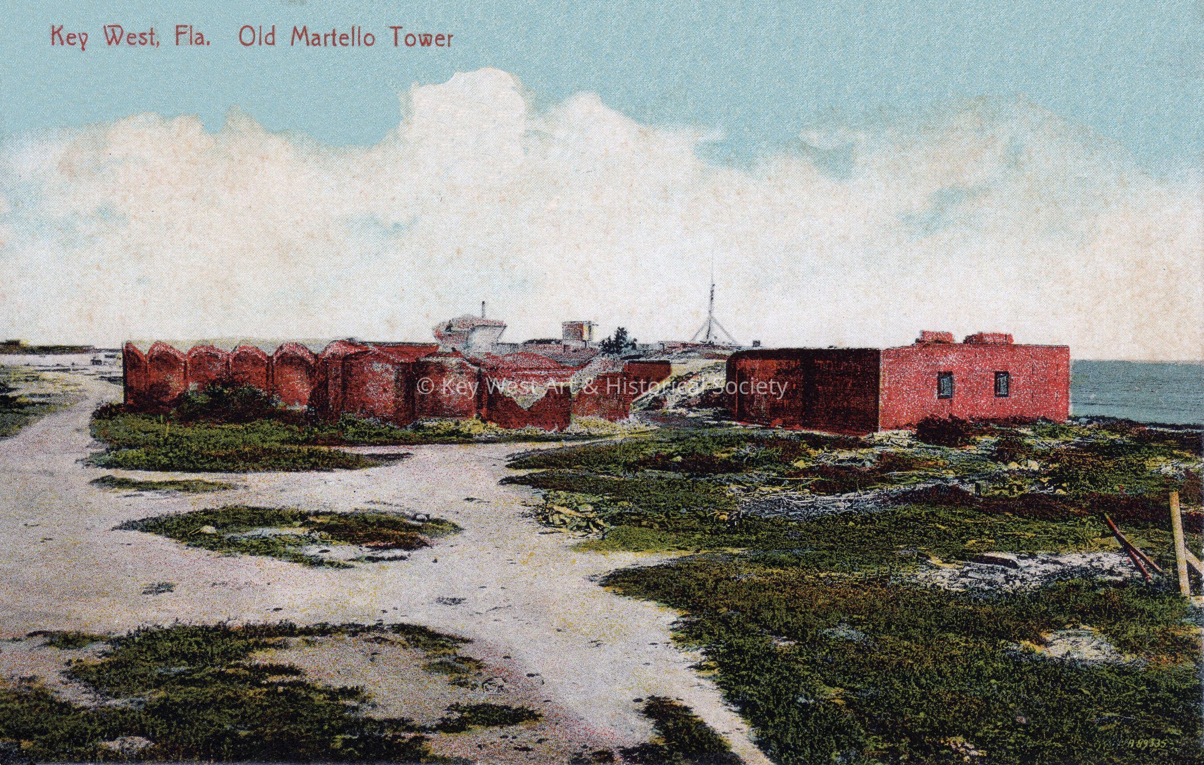 Postcard depicting the ruins of Fort East Martello near the ocean. The caption reads, ‘Key West, Florida, Old Martello Tower’.Collection