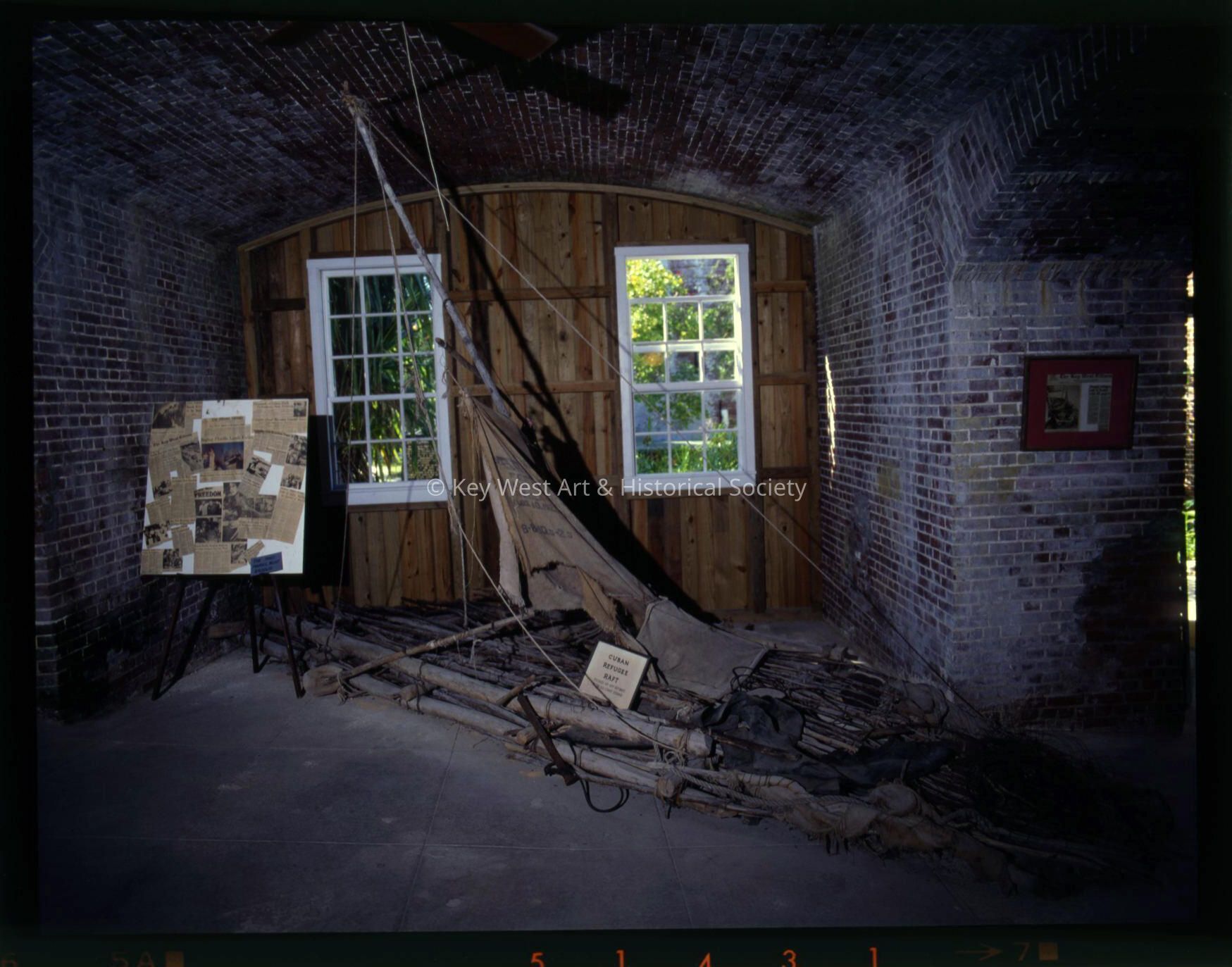 Color negative of the Cuban Raft display at the Fort East Martello Museum.