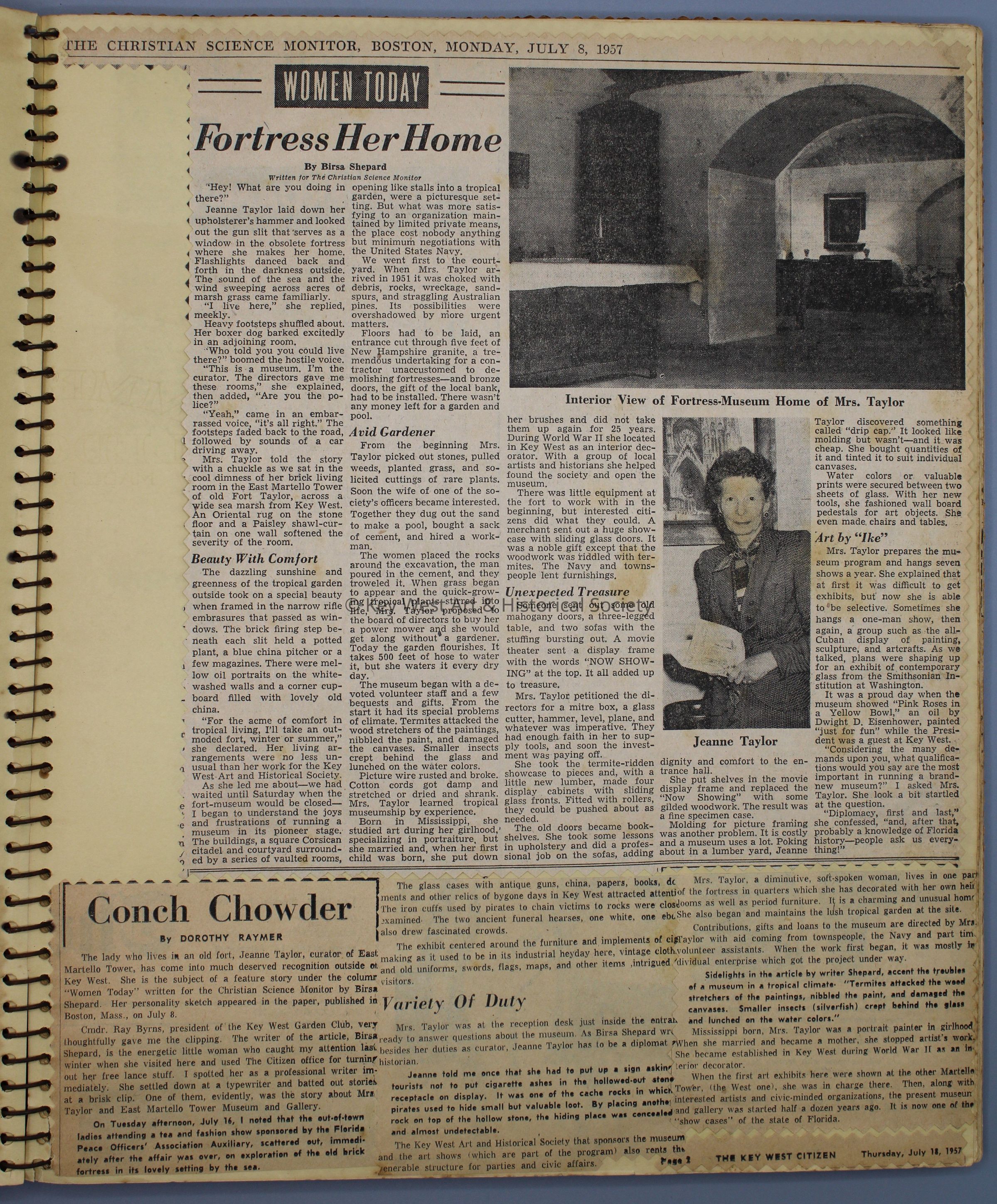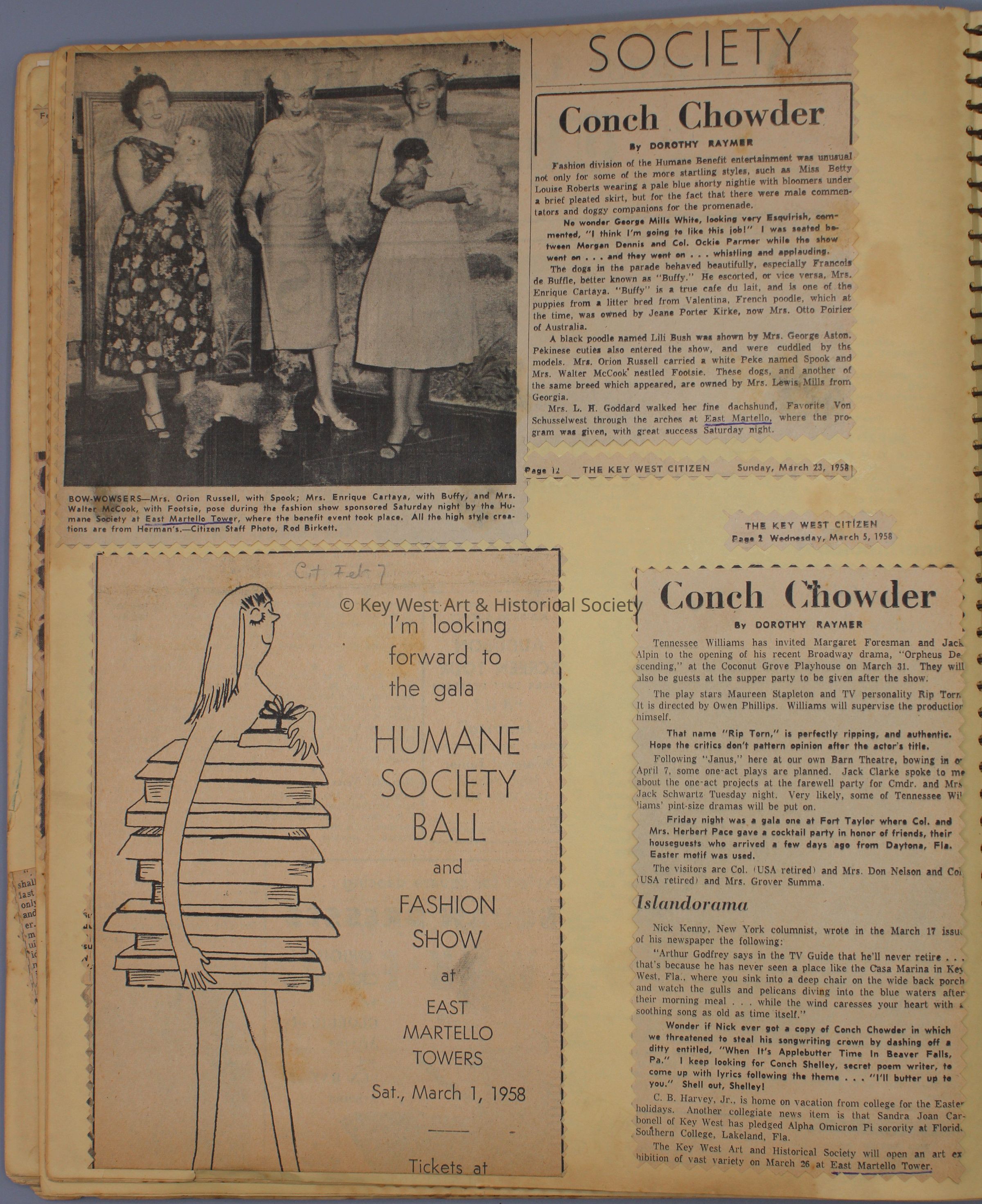 Spiral bound scrapbook with news clippings and ephemera related to The Key West Art & Historical Society and events held at the Fort East Martello Museum.