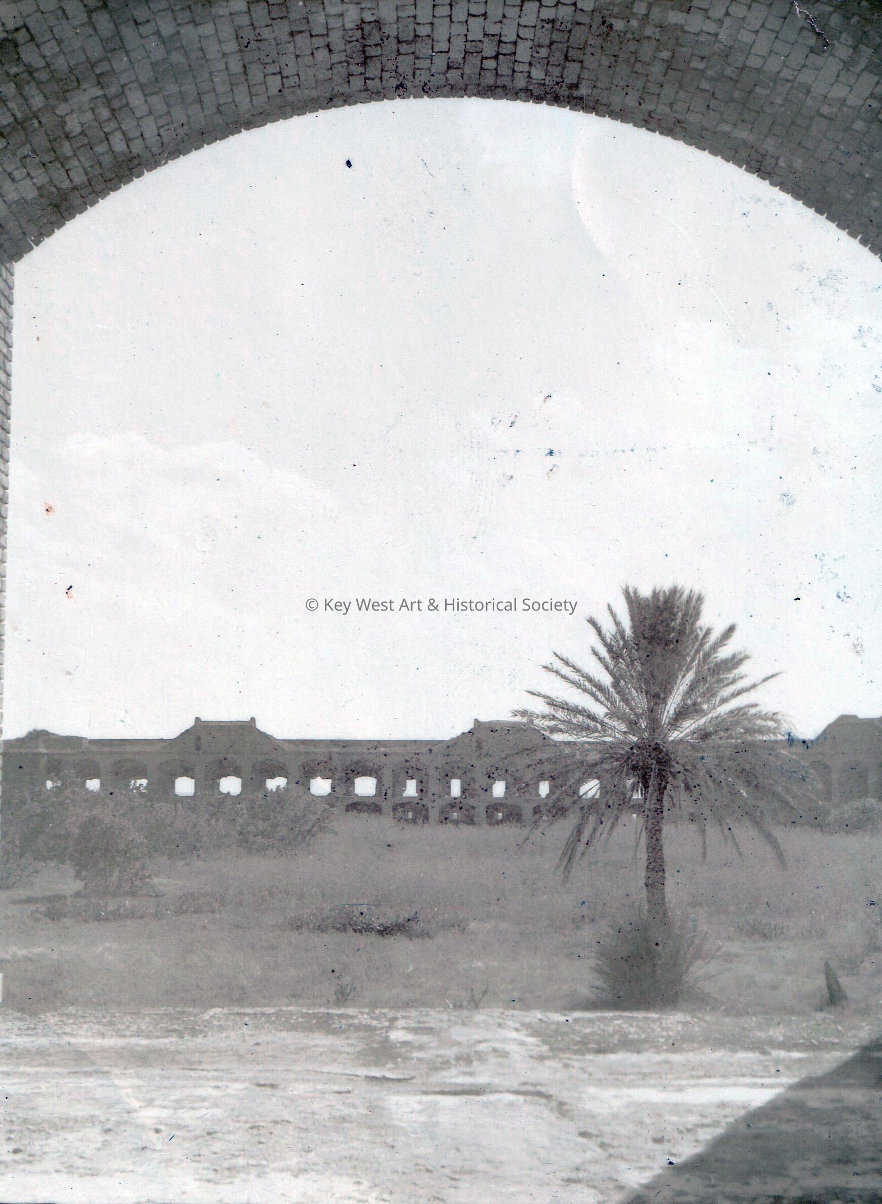 Black and white photograph of the Parade Grounds at Fort Jefferson in the Dry Tortugas.