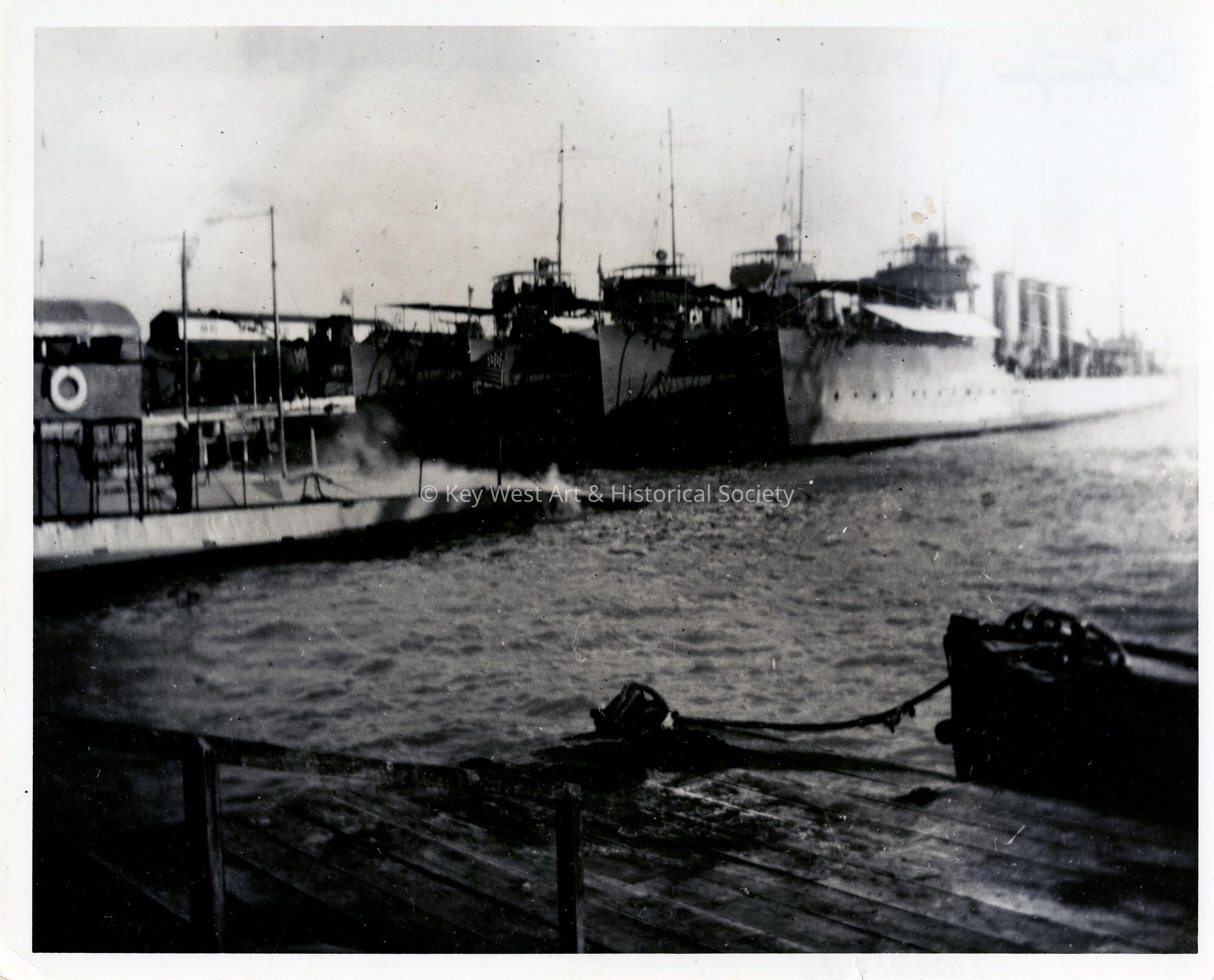 Black and white photograph of four stack destroyers at Naval Station Key West during World War I.