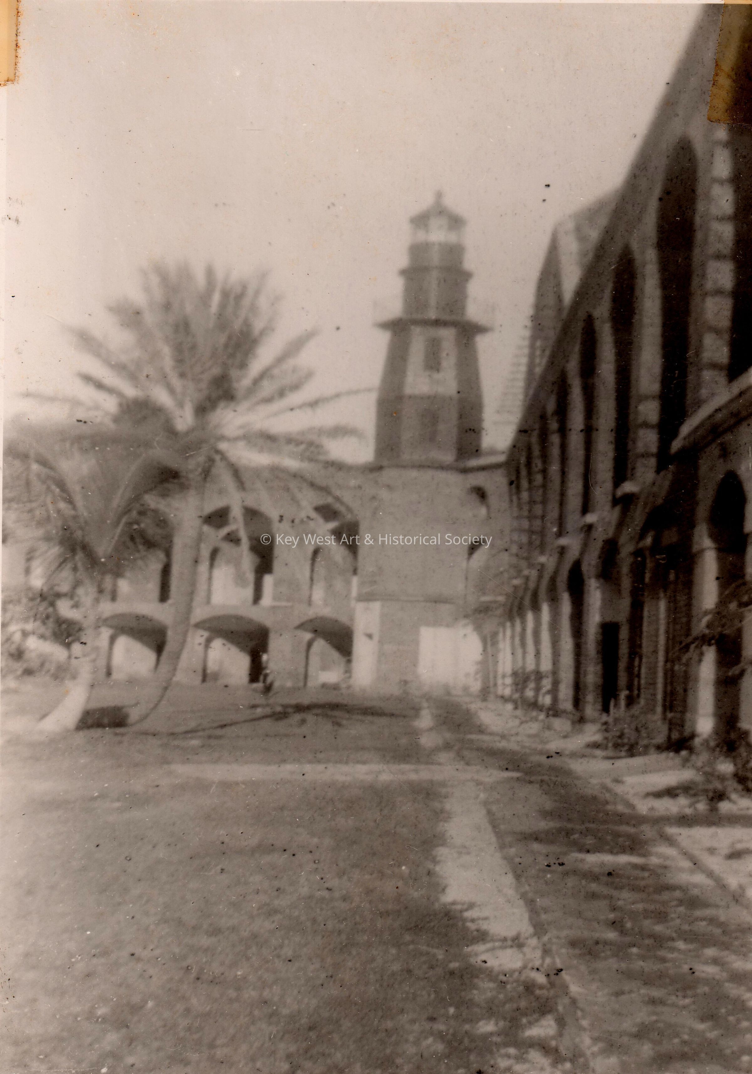 Black and white photograph of the Garden Key Lighthouse at Fort Jefferson.