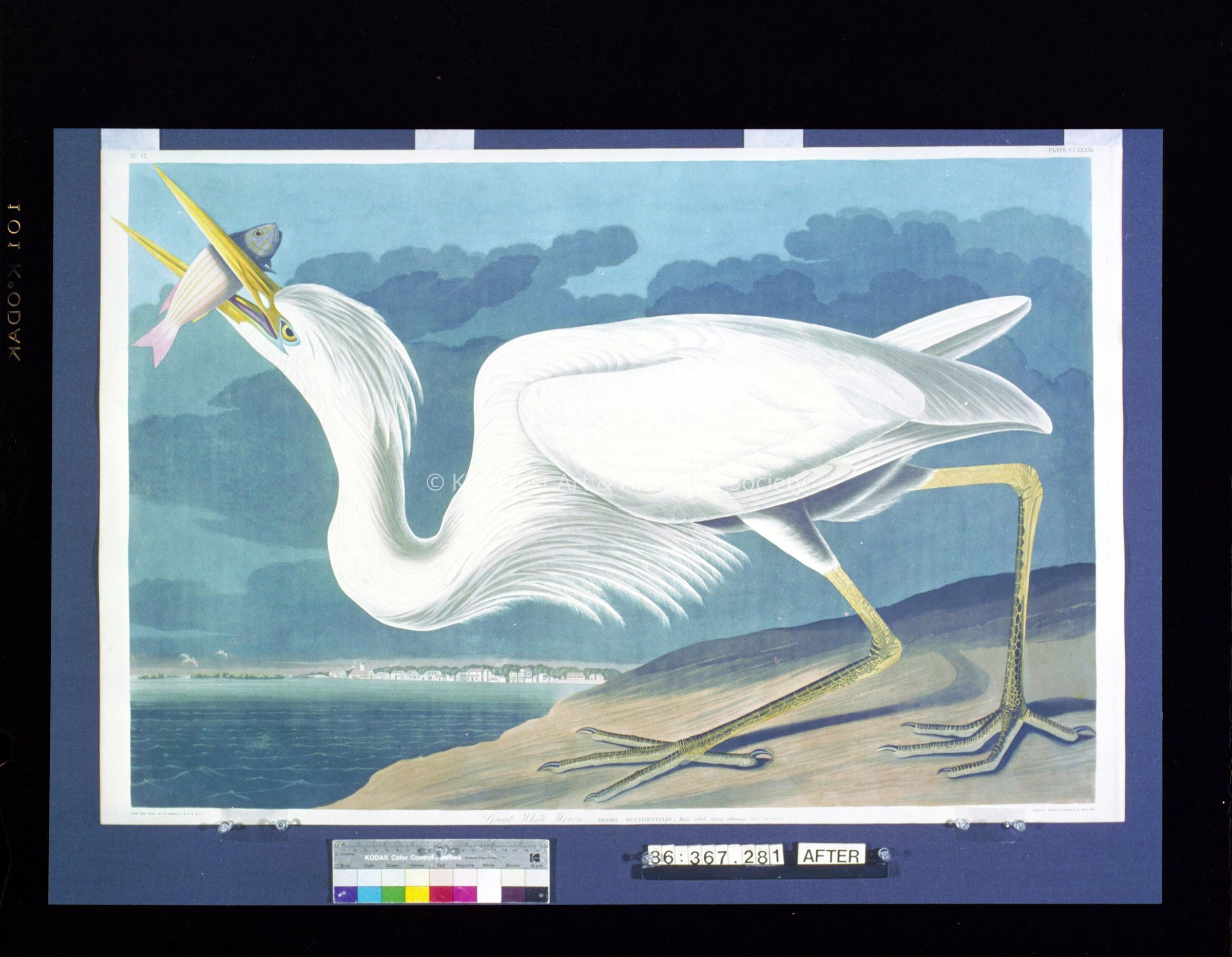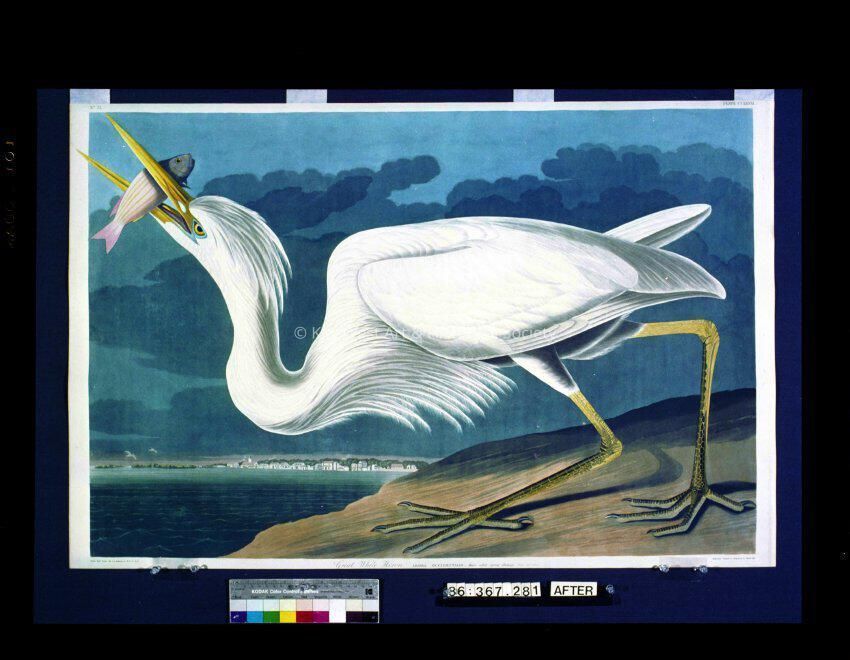 Color negative of John James Audubon's 'Great White Heron', plate 281, in 'Birds of America'. He encountered the Great White Heron during a visit to Indian Key in 1832.Collection