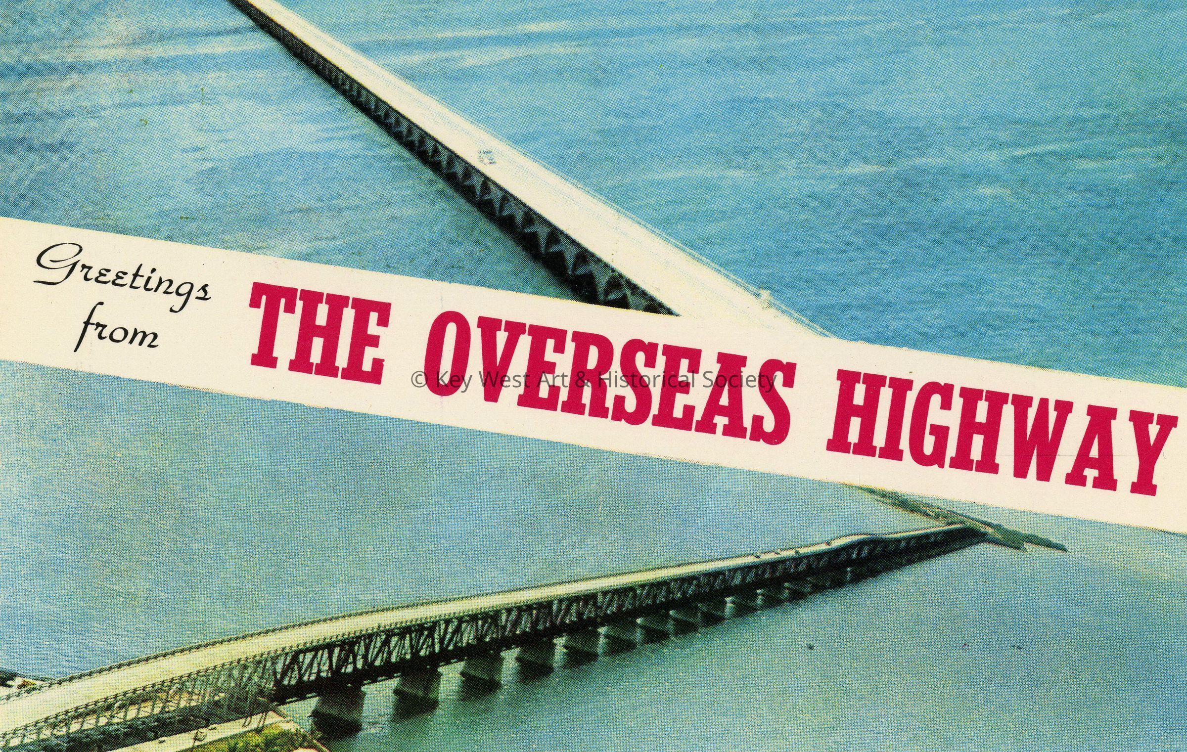 Postcard of two aerial views of the Overseas Highway. Caption on verso reads, 'Aerial view of Seven Mile Bridge and Bahia Honda Bridges on the Overseas Highway to Key West, Southernmost city of the U.S.'Collection