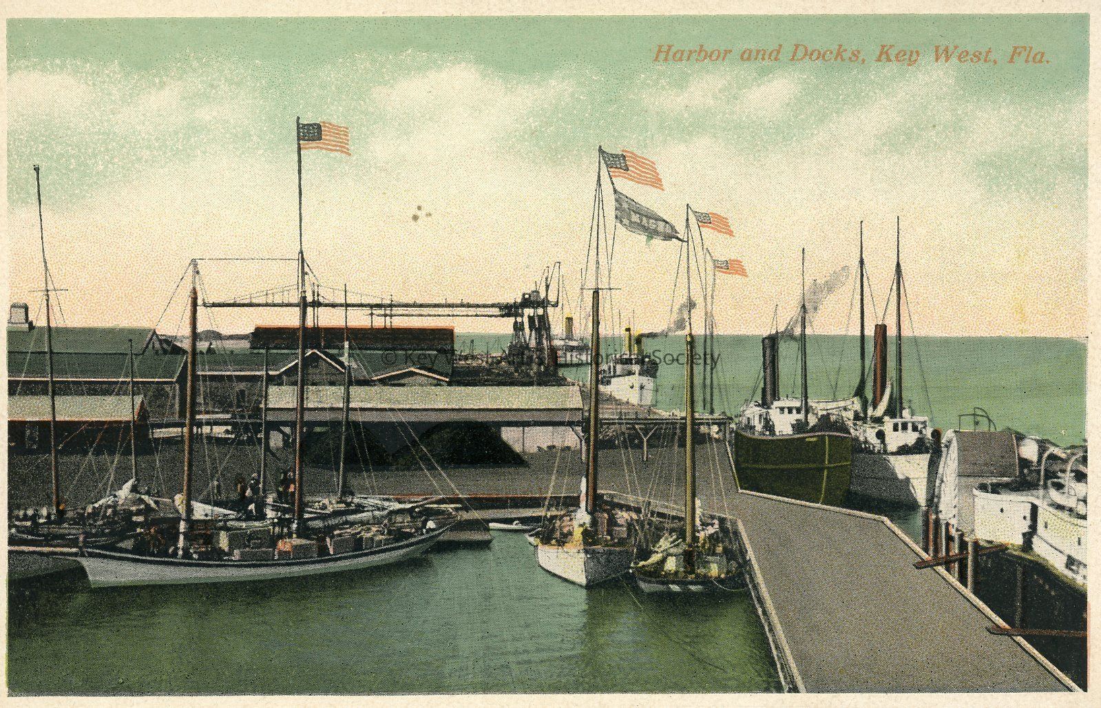 Postcard depicting the harbor and docks scene in Key West, Florida.Collection
