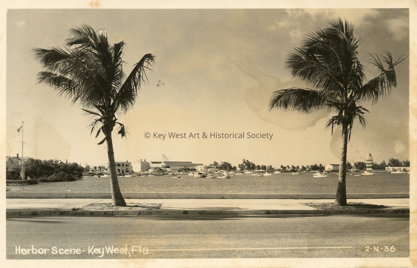Postcard depicting a harbor scene in Key West, Florida.