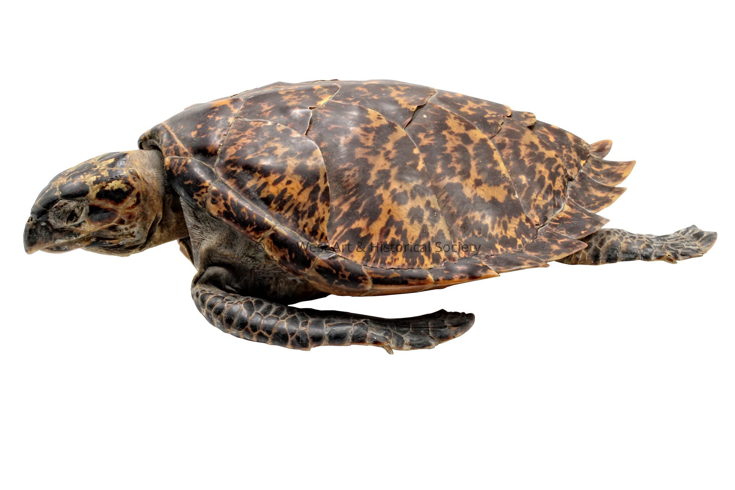 Hollowed out hawksbill sea turtle with full shell, head and flippers.Collection