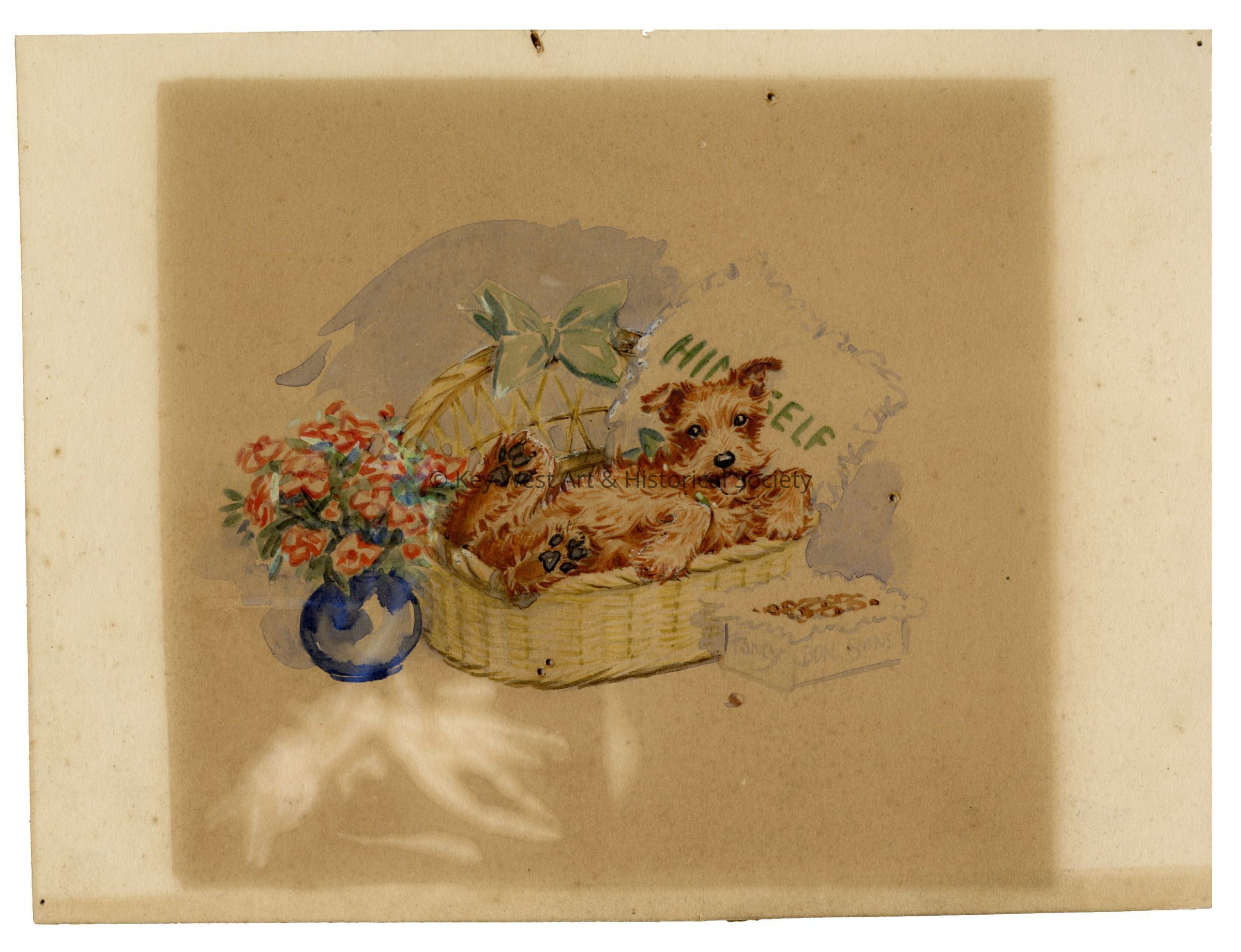 Watercolor on board by Morgan Dennis depicting an Irish Terrier pup named 'Himself'.Collection