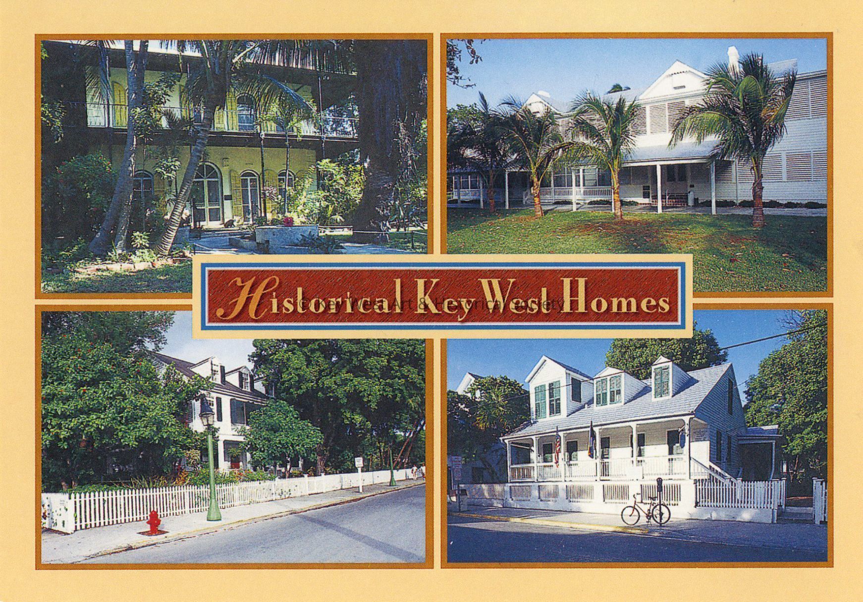 Postcard depicting four historically significant Key West homes. Notation on verso, 'Hemingway House, Little White House, Audubon House, Wrecker's Museum [Oldest House].'Subject Place