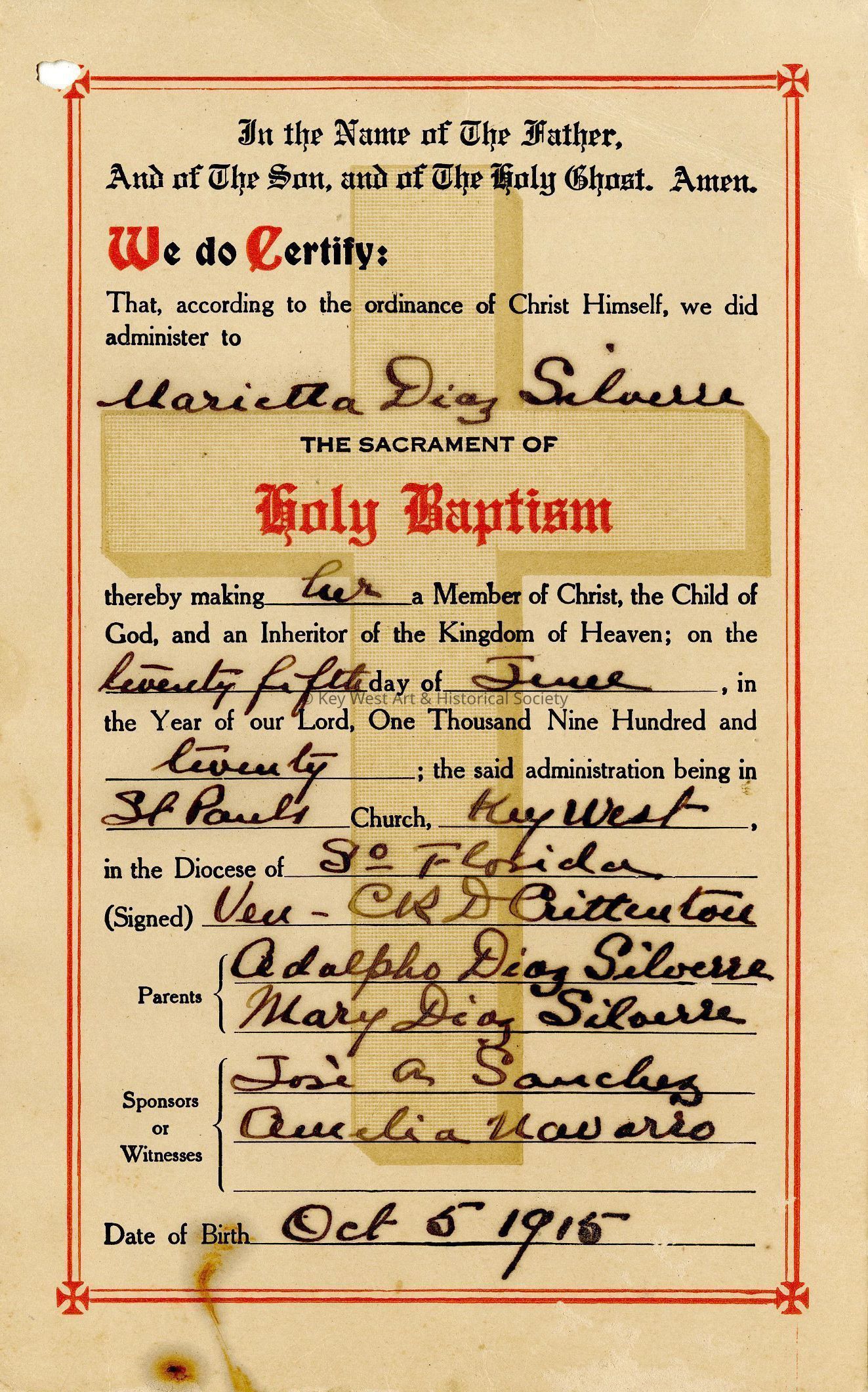 Certificate, BaptismalNomenclature Secondary Object Term