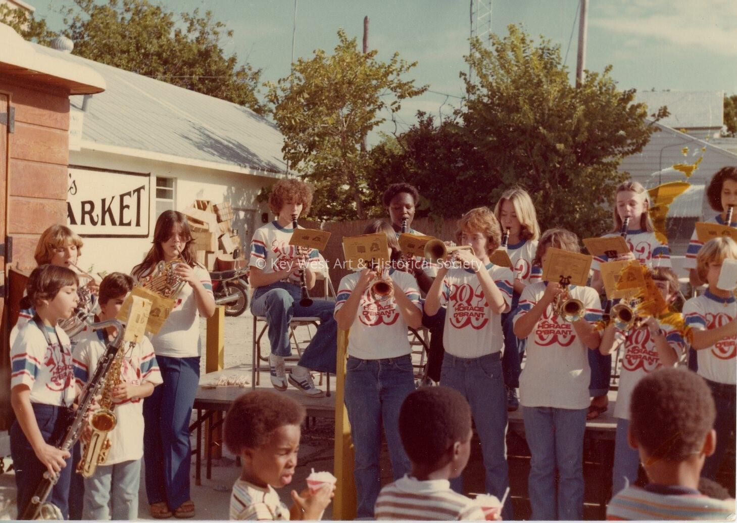 Color photograph of Horace O'Bryant students performing as part of the school's band.Photograph Details