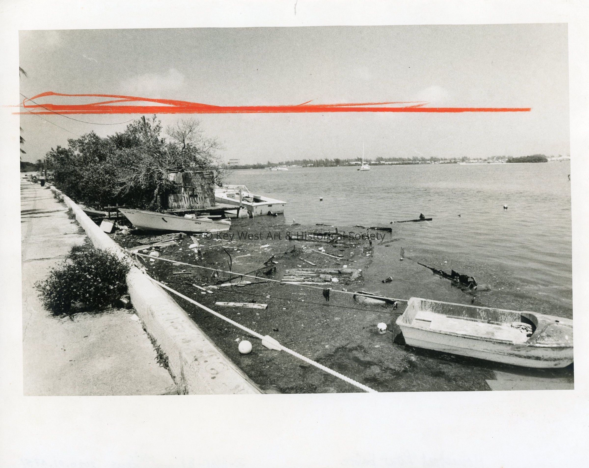 Black and white photograph of House Boat Row to be located at the top of Key West on South Roosevelt Boulevard.