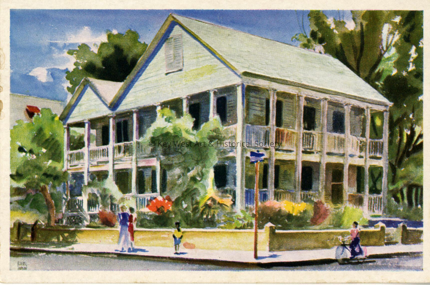 Postcard depicting the Bahama House at 730 Eaton Street. Notation on verso, 'House from the Bahamas Key West, Florida. Original painting by Avery F. Johnson - in the collection of the Key West Administration.'Subject Place