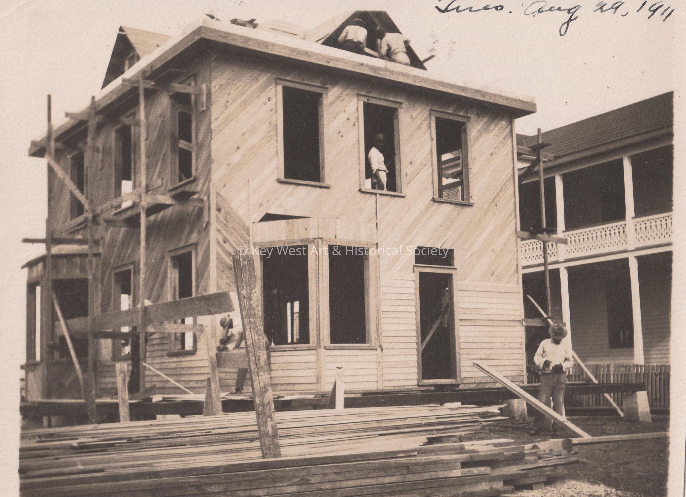 Photograph of an unknown house being built taken on Tuesday, August 29, 1911. Photograph taken for the Blackstone Gas and Electric Company.Collection