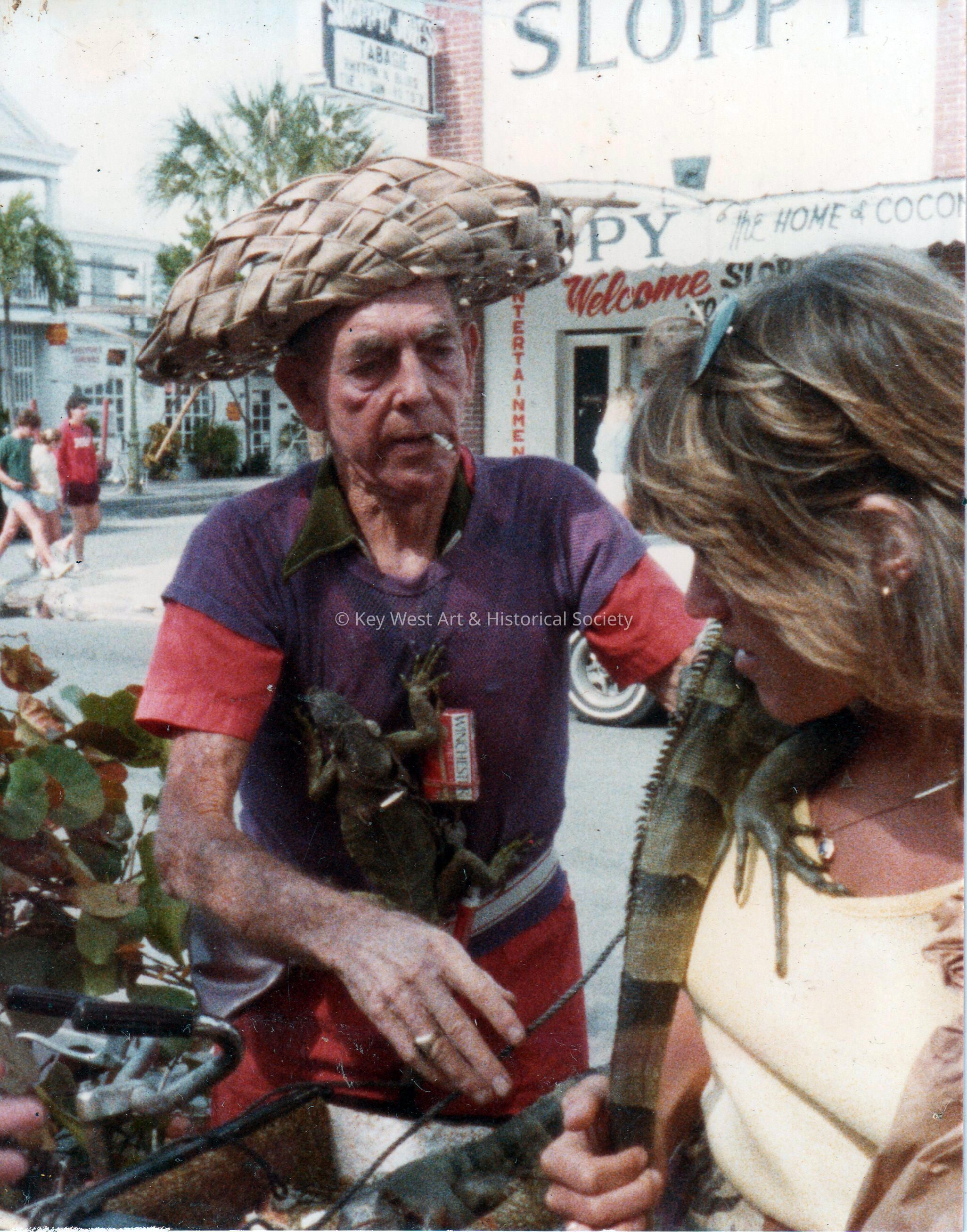 Iguana Man in front of Sloppy Joe's Bar.