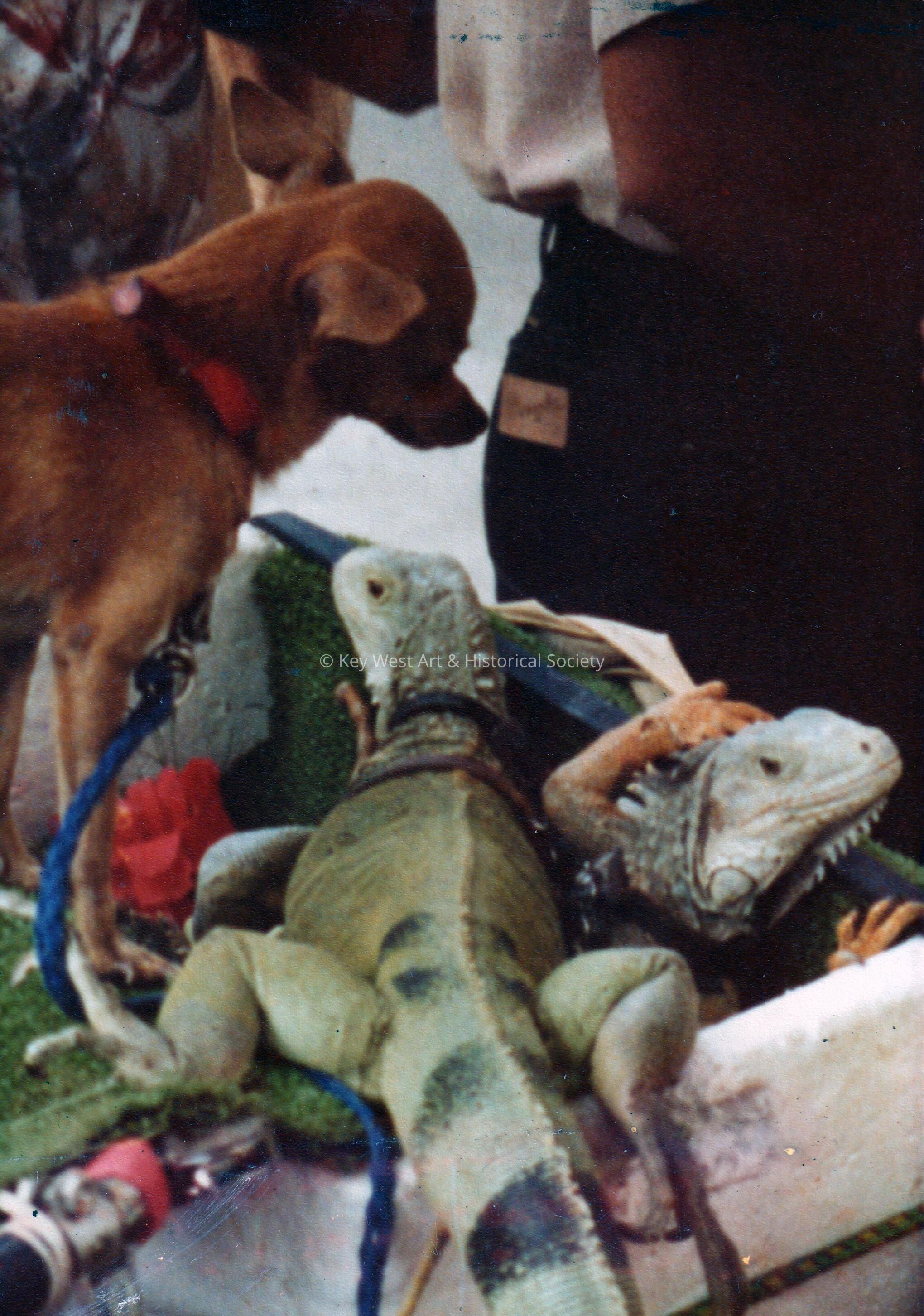 Iguana and dog owned by John Meek, Iguana Man.