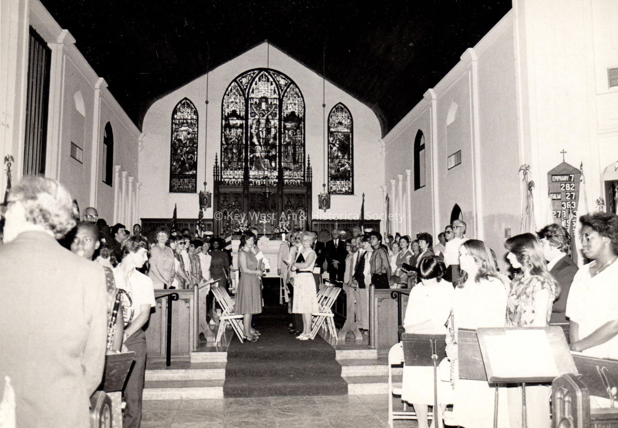 Black and white photograph of the interior of St. Paul's Episcopal Church at 401 Duval Street.Photograph Details