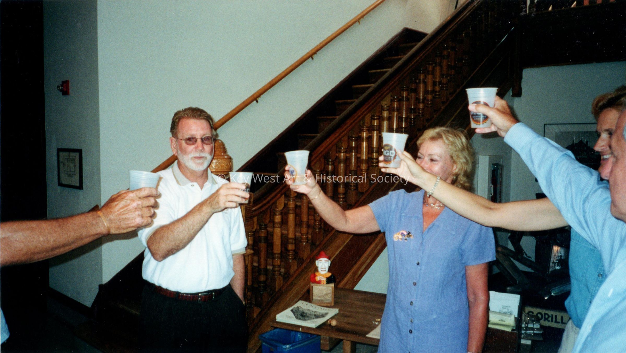 Color photograph of Claudia Pennington and unknown people at the Custom House Museum.Collection