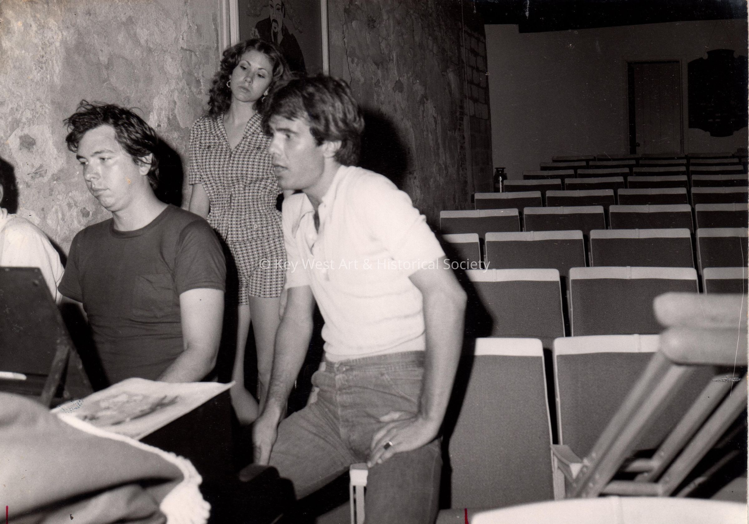 Black and white photograph of unknown people inside the Waterfront Playhouse.