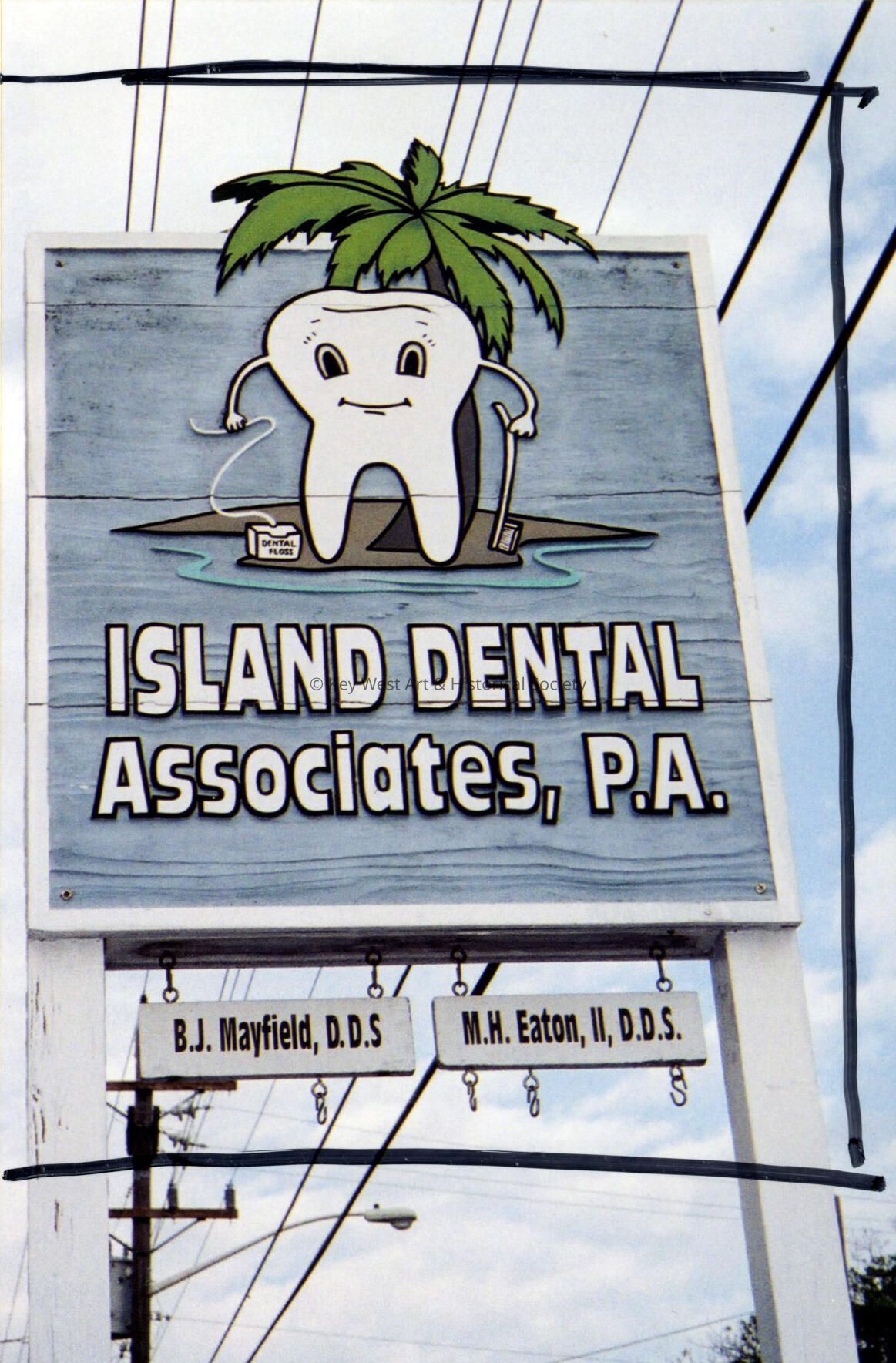 Color photograph taken by historian James M. Goode of the Island Dental Associates sign at 1721 Flagler Avenue during a trip to Key West in February 2001. Printed from Roll 7.Photograph Details