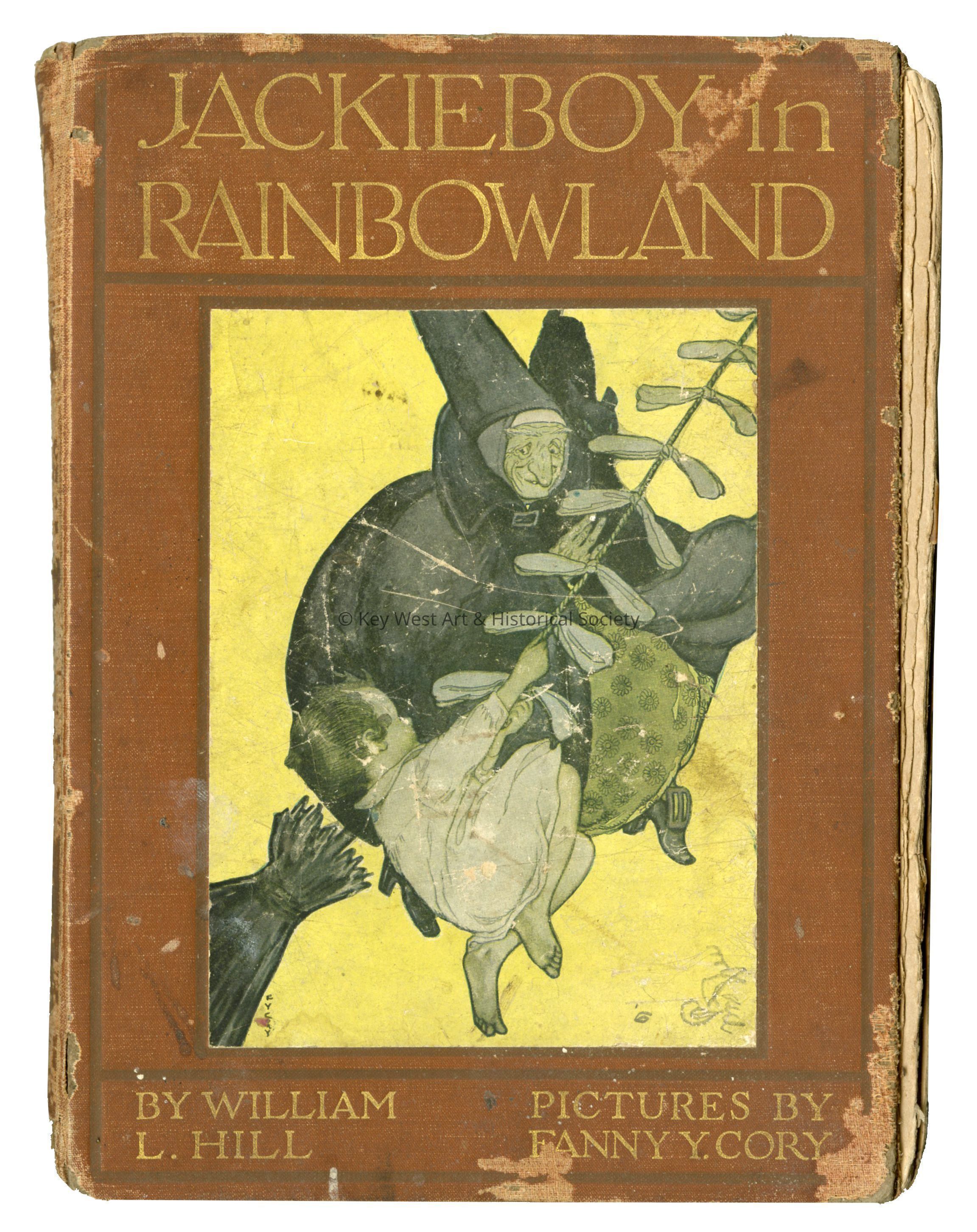 Hardcover illustrated children's book, first published in 1911. The adventures of a little boy Jackie who gets swept away by a kite and lands in a place with vibrant rainbow colors. Illustrations by Fanny Young Cory.Collection