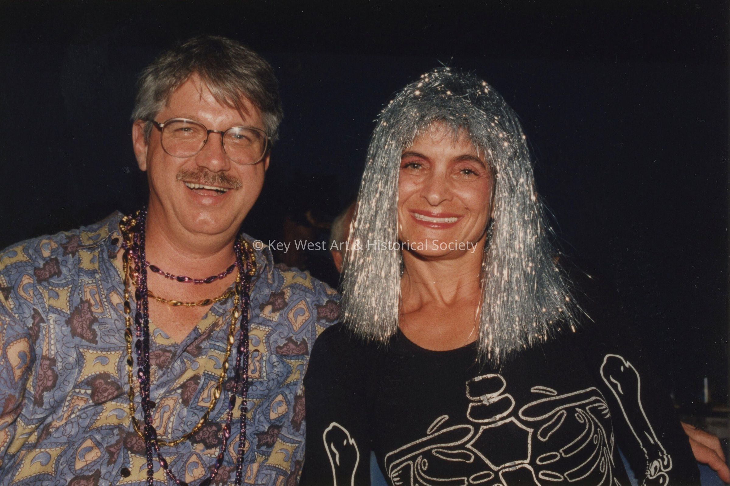 Color photograph of Jimmy Weekley and an unknown woman during the Fantasy Fest parade.