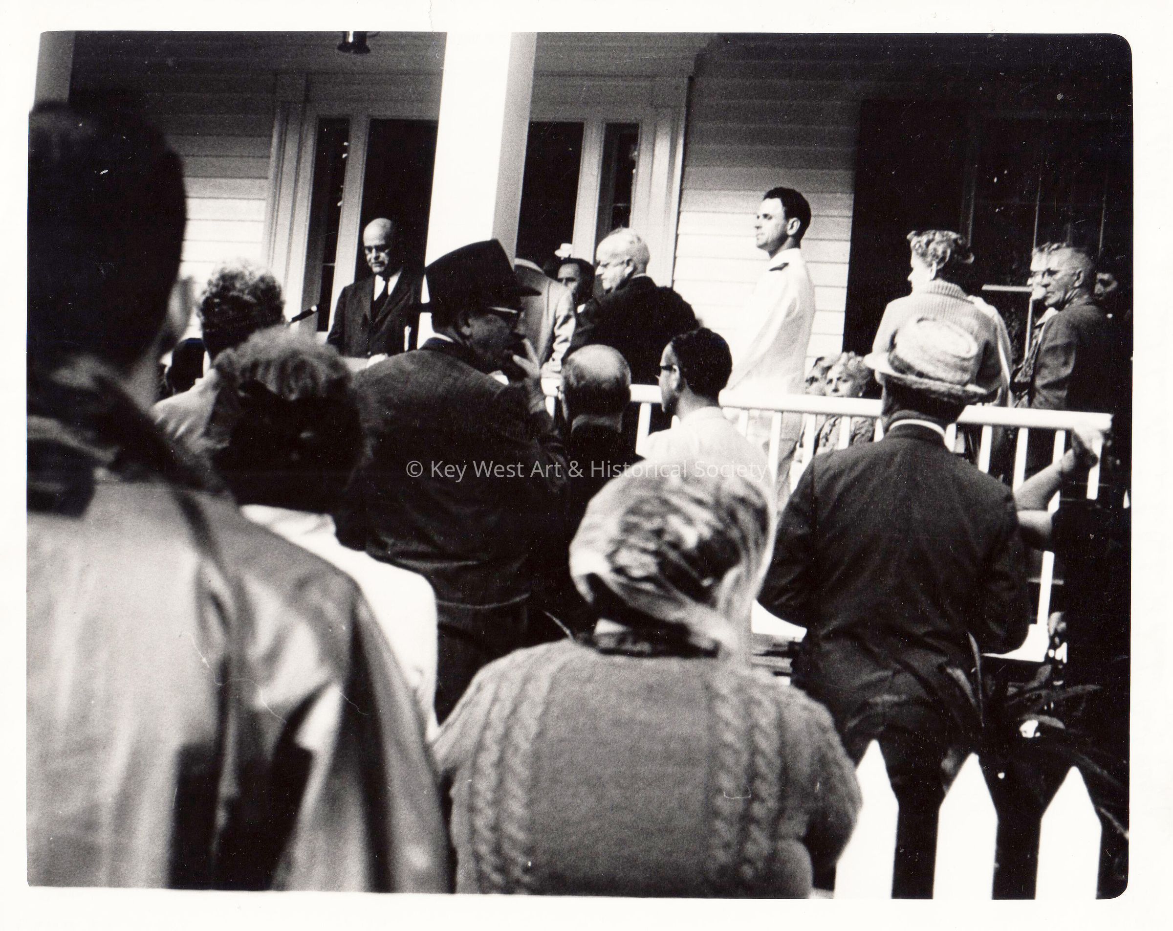 Black and white photograph of John H. Baker, past president of the National Audubon Society, speaking at the dedication of the Audubon House.