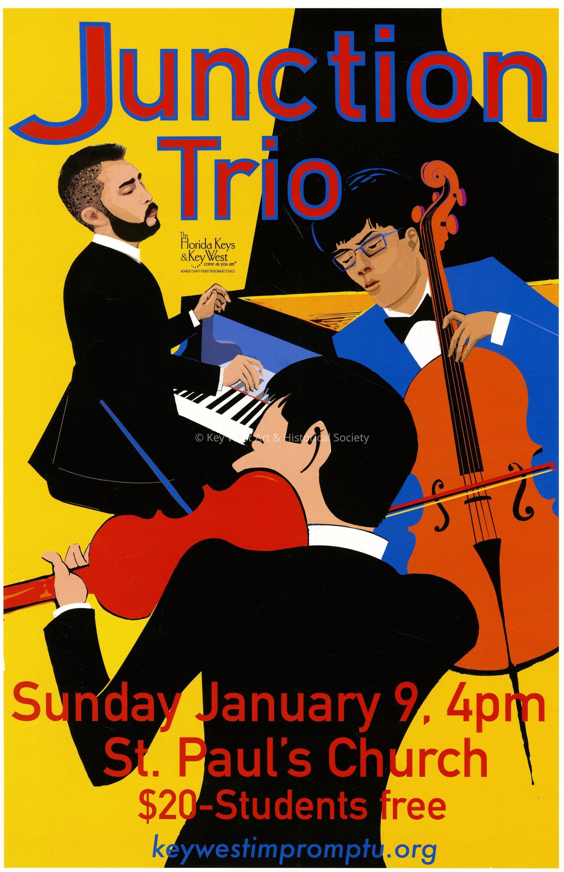 An advertising poster for Impromptu Classical Concerts entitled 'Junction Trio'. The concert took place on January 9, 2022 at St. Paul's Episcopal Church at 401 Duval Street.Collection