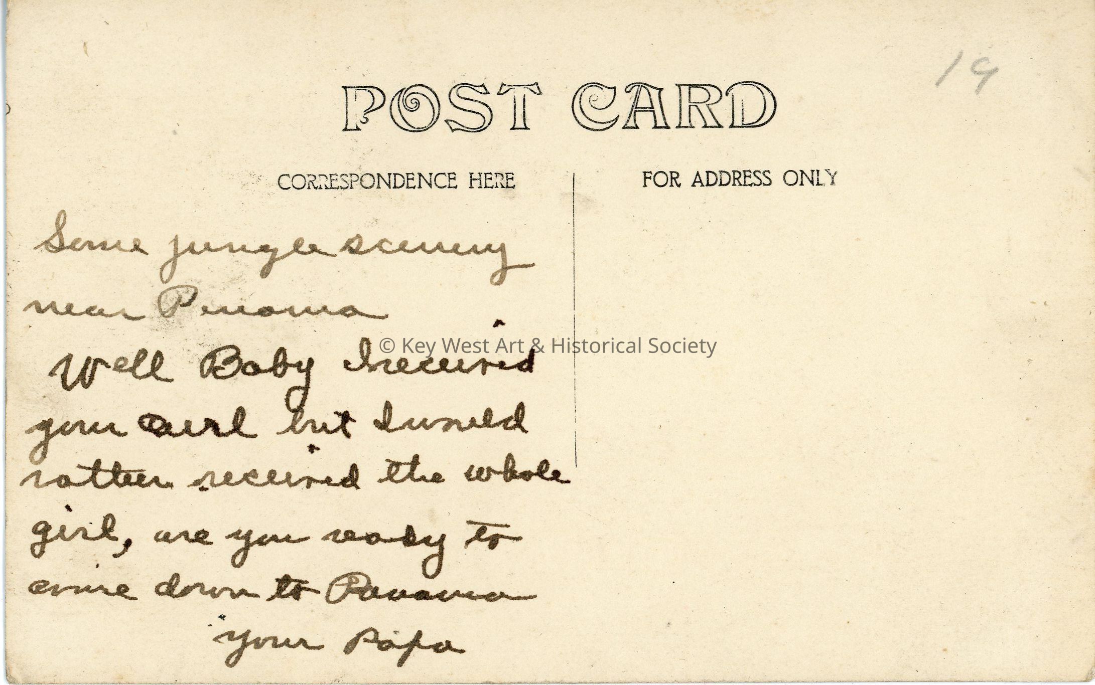 Black and white photograph postcard depicting the jungle near Panama City. Verso has a handwritten note.