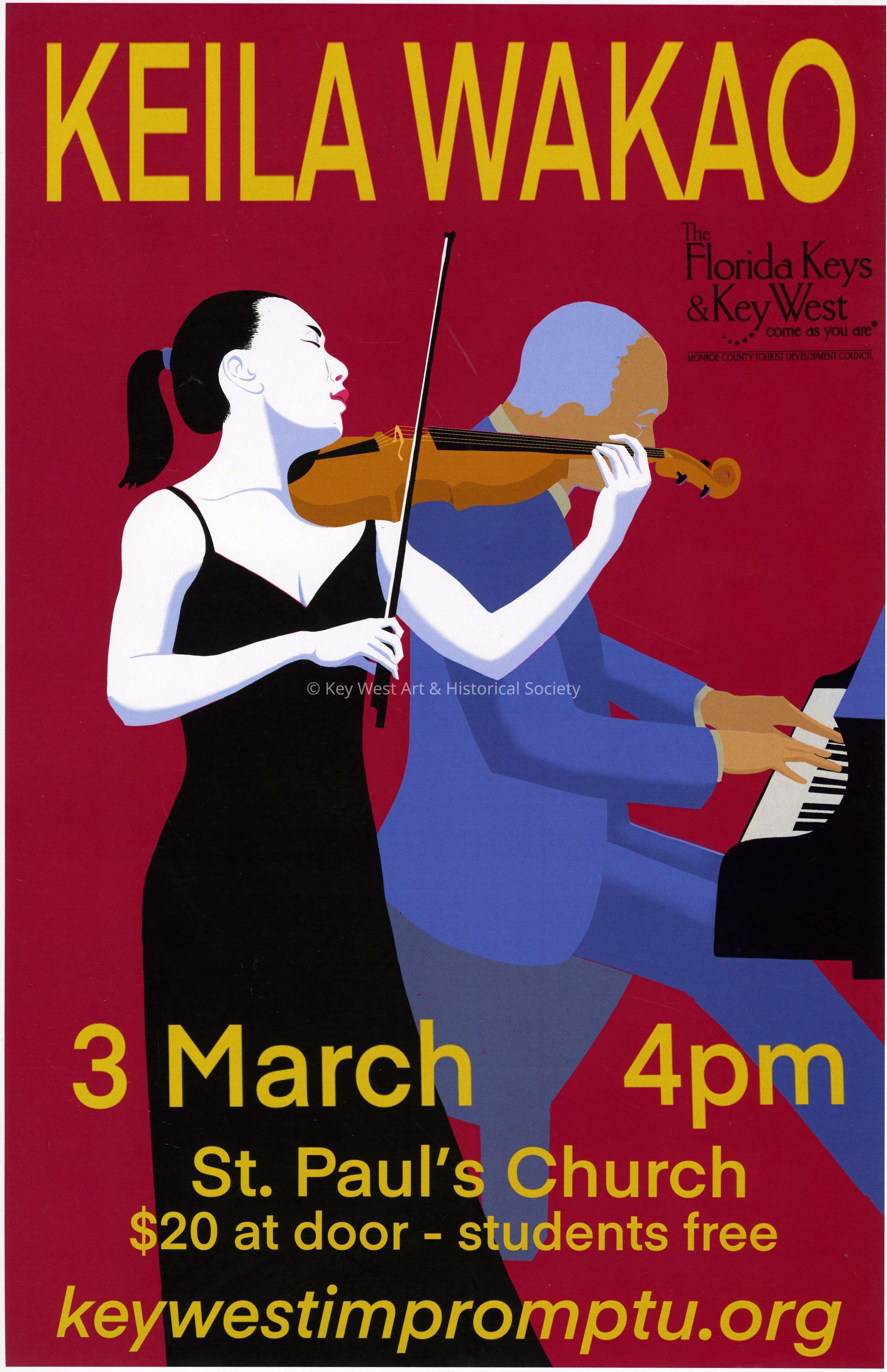 An advertising poster for Impromptu Classical Concerts entitled 'Keila Wakao'. The concert took place on March 3, 2024 at St. Paul's Episcopal Church at 401 Duval Street.Collection