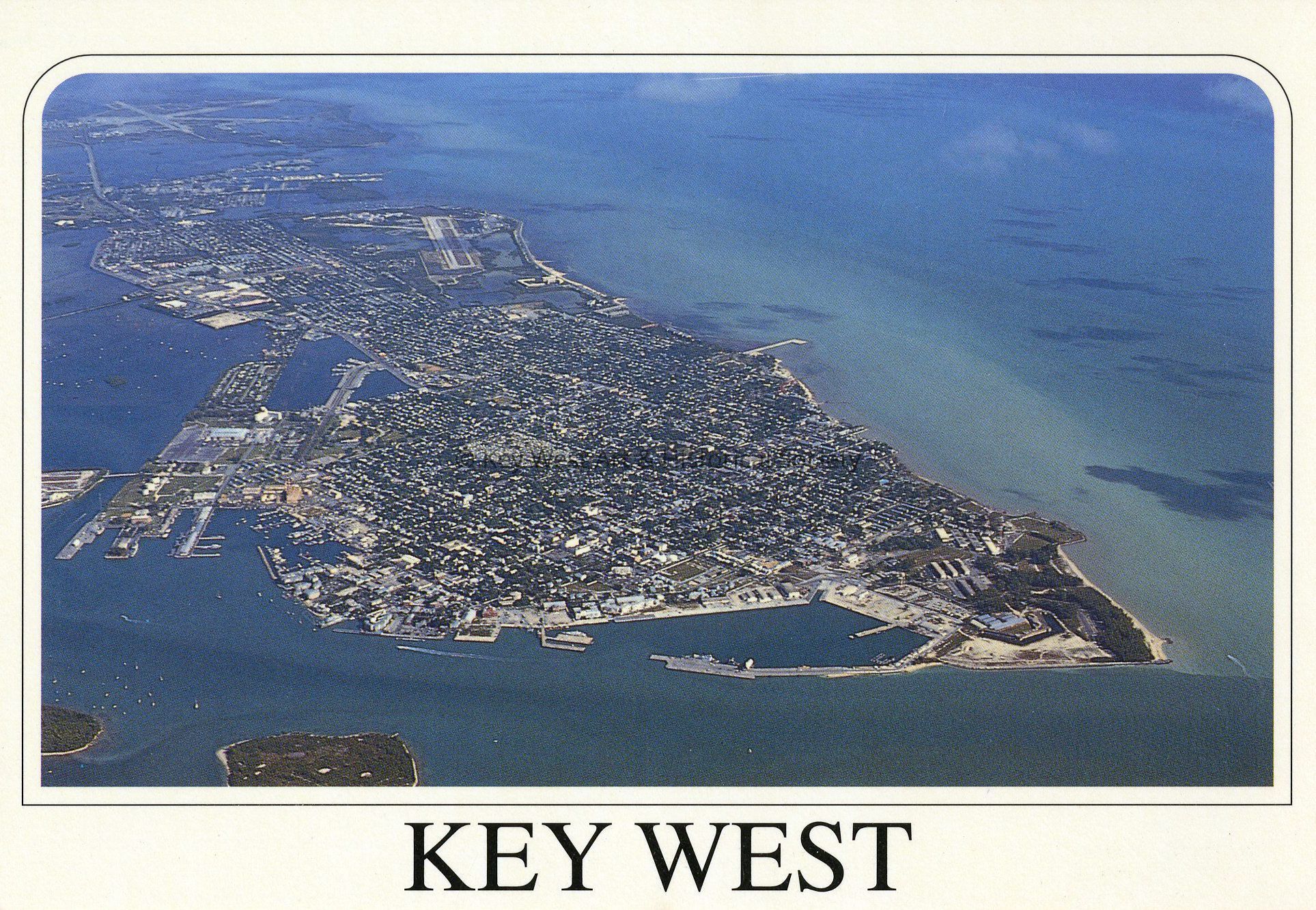 Postcard depicting an aerial view of Key West.