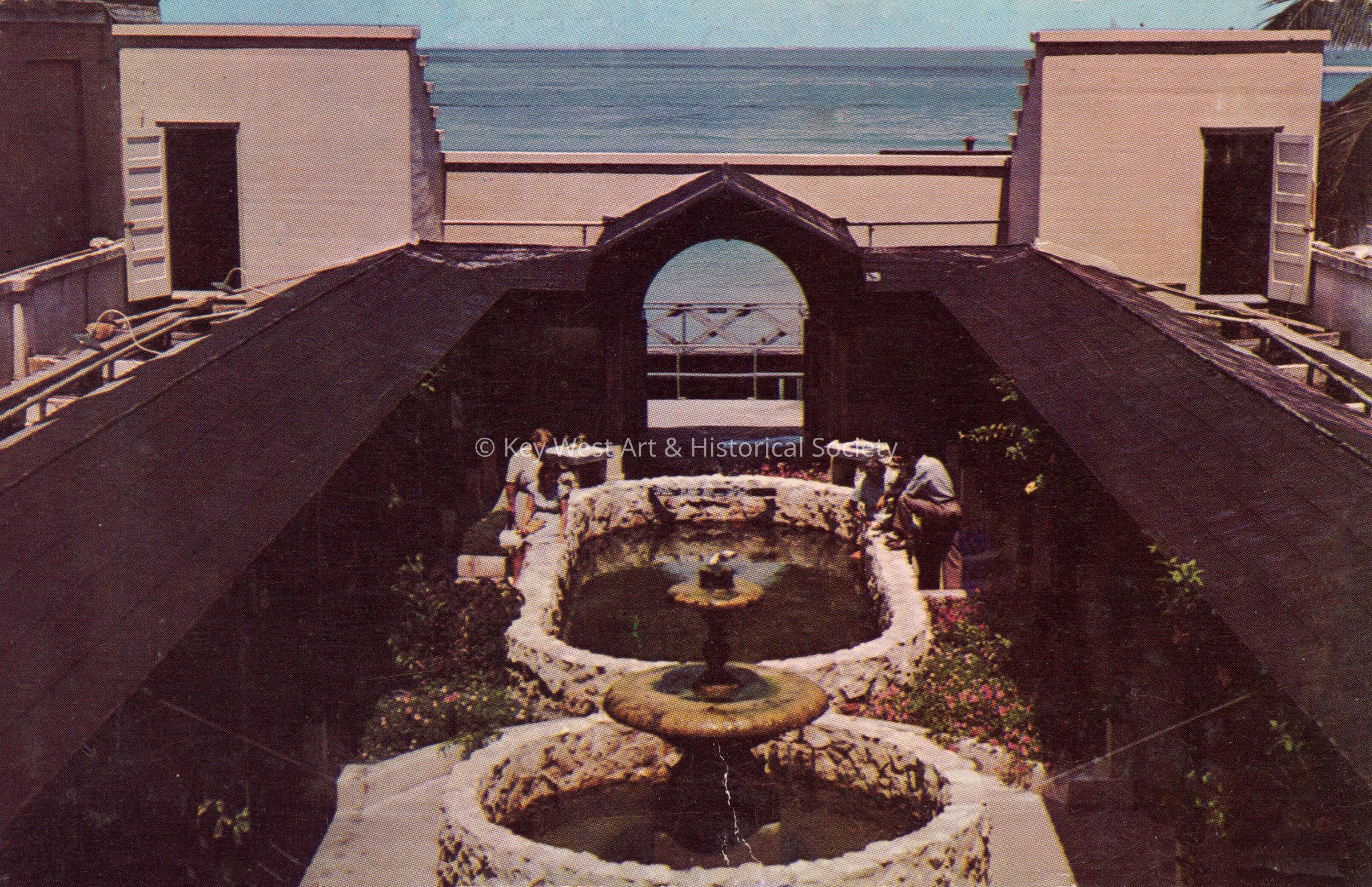 Postcard depicting an outdoor aquarium near the ocean. The description on the verso reads, 'Open Aquarium at Key West, Florida.'Collection