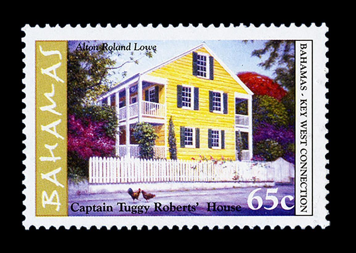 One of a series of four stamps issued by the Government of the Bahamas in 2005 honoring the connection between the Islands and Key West. This 65¢ stamp features Captain Richard 'Tuggy' Roberts' House at 408 William Street. Stamp taken from a painting by Alton Lowe.Collection