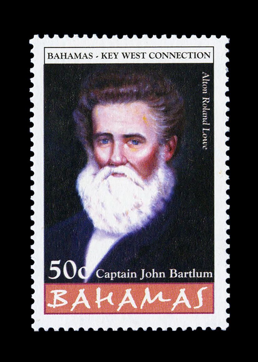 One of a series of four stamps issued by the Government of the Bahamas in 2005 honoring the connection between the Islands and Key West. This 50¢ stamp features Captain John Bartlum originally from Green Turtle Cay. Stamp taken from a painting by Alton Lowe.Collection