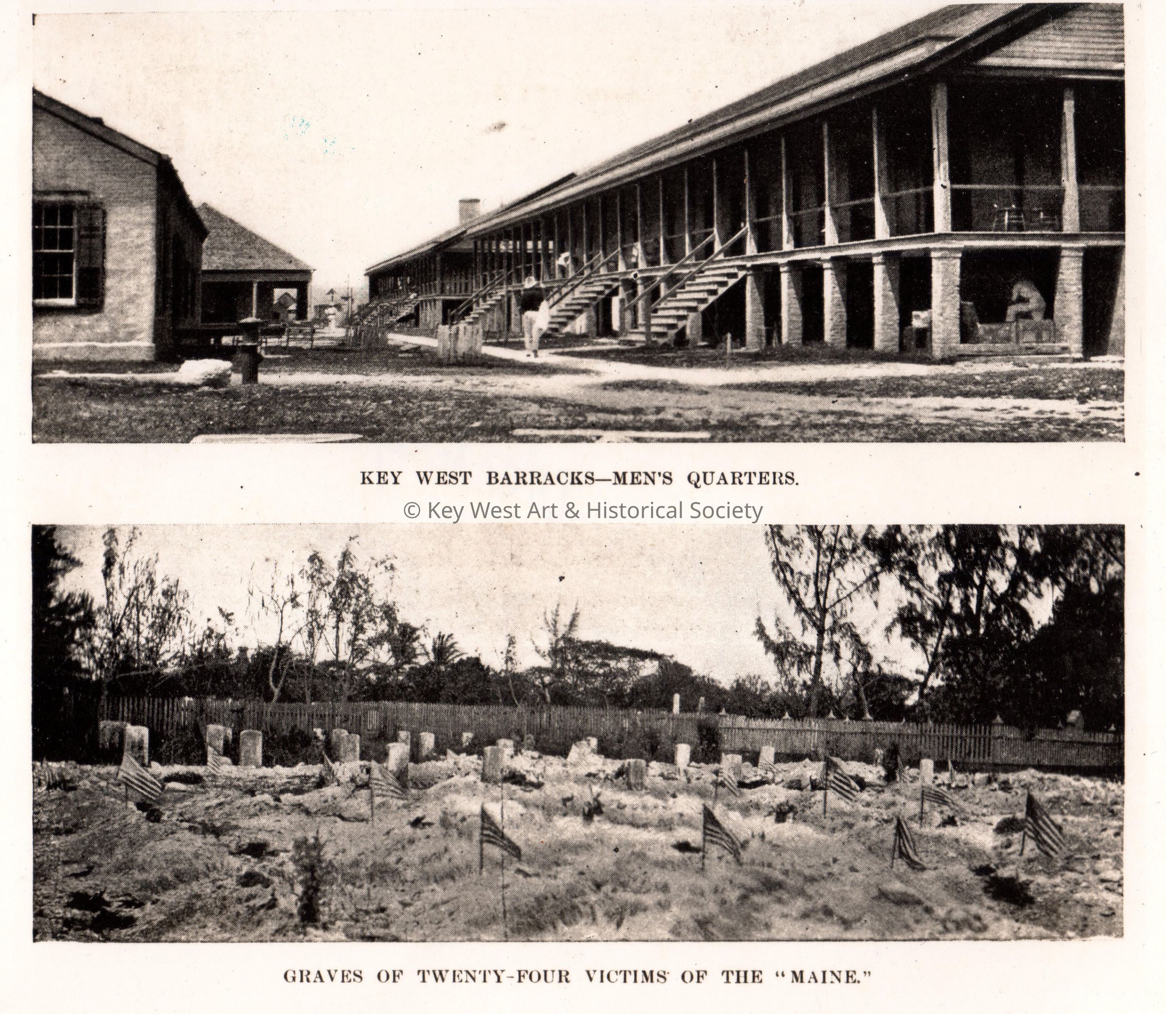 Two photos - Key West Barracks - Men's Quarters; and graves of Twenty-four victims of the MAINE.Collection