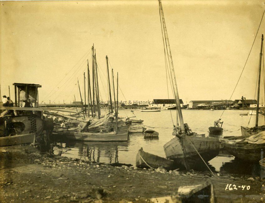 Black and white photograph of Key West Bight.