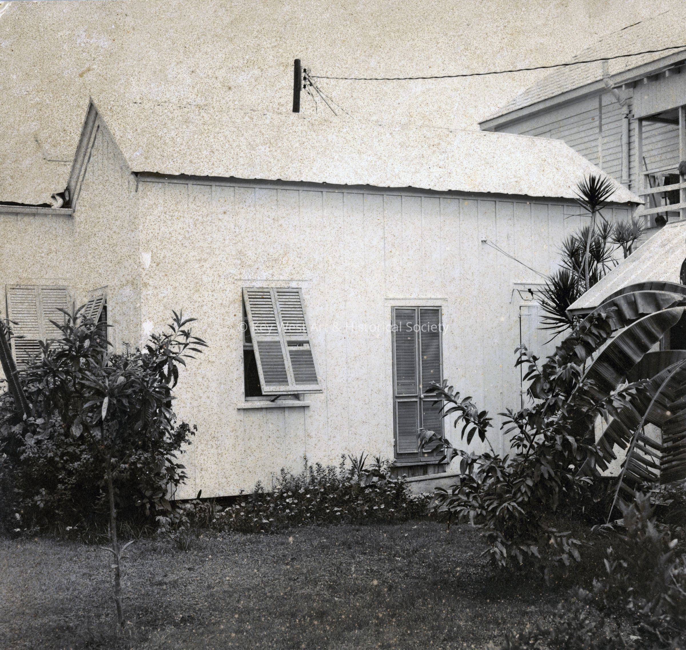 Black and white photograph of an unknown Key West cottage.