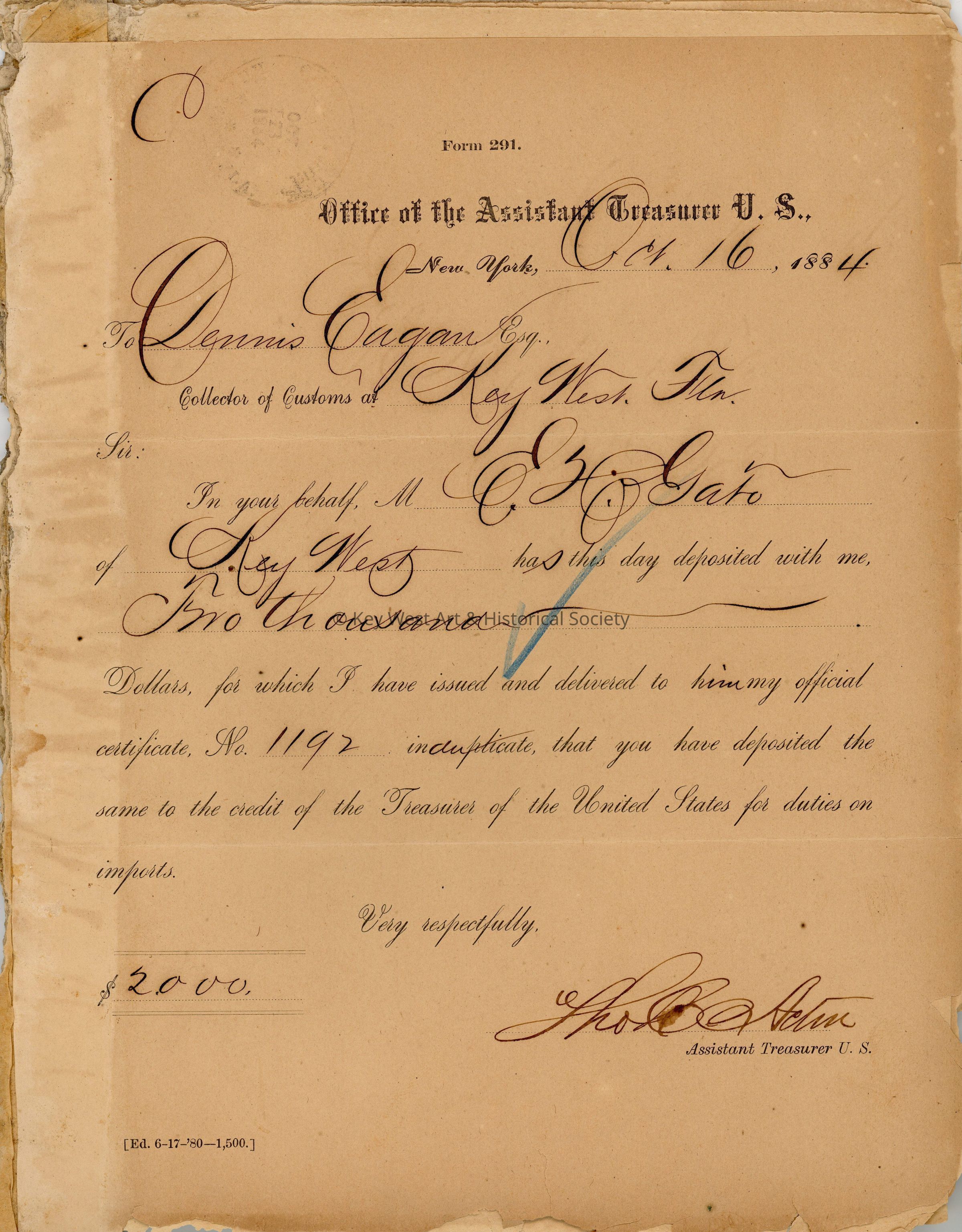 Office of the Collector of Customs, Key West, FloridaDate(s) of Creation
