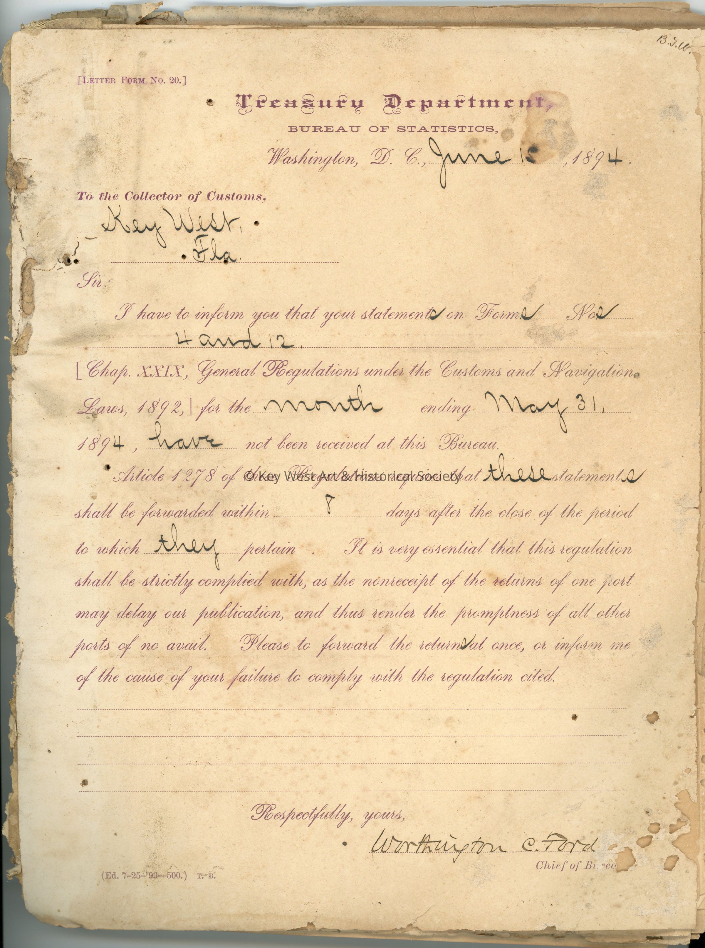 Key West Custom House LetterbookEntry/Object ID