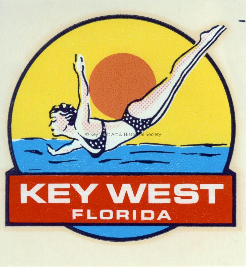 A travel decal created by the Impko company depicting a woman diving into the water in Key West.Collection