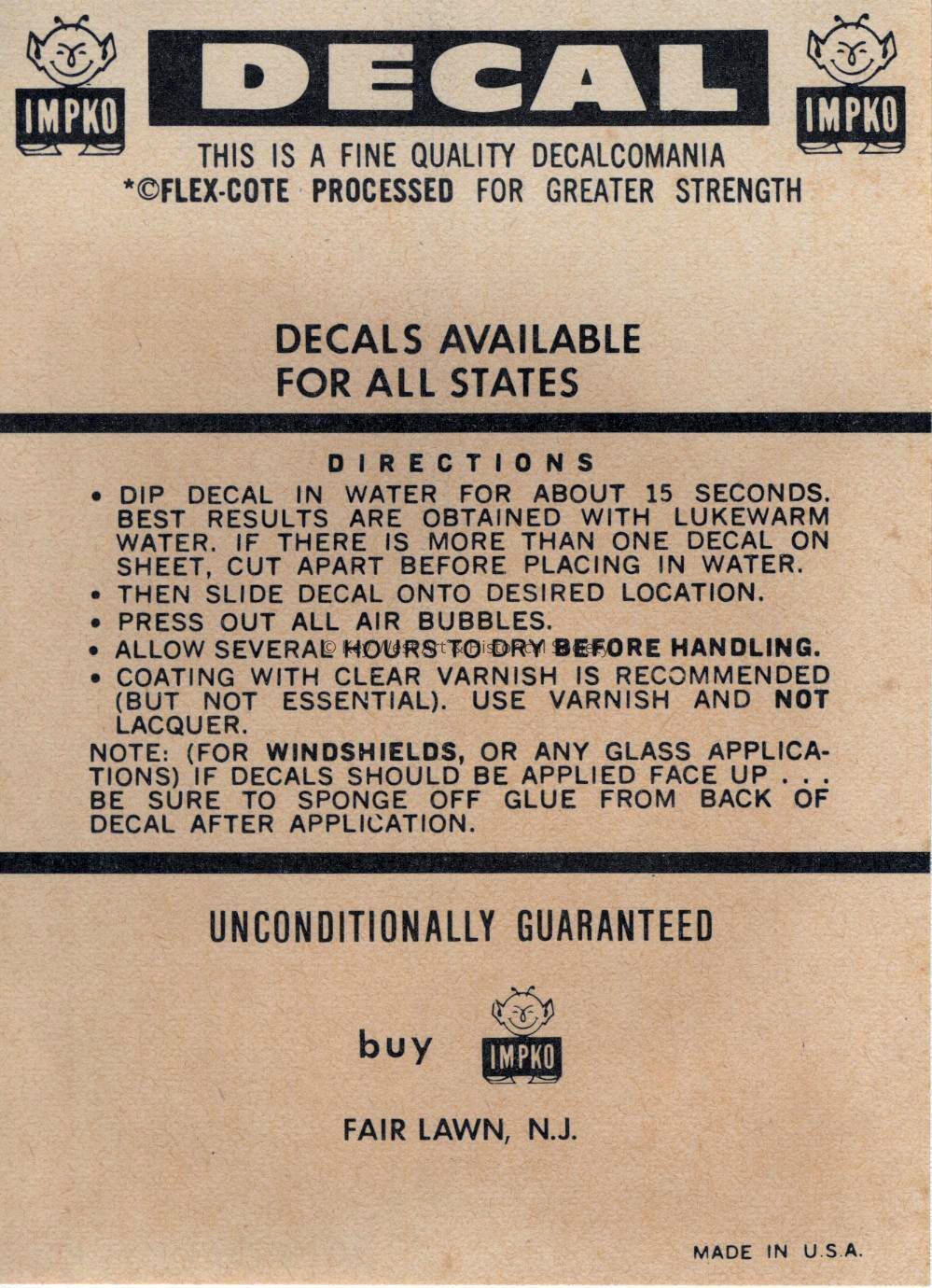 Instructions that accompanied the travel decal created by the Impko company depicting a woman diving into the water in Key West.Collection